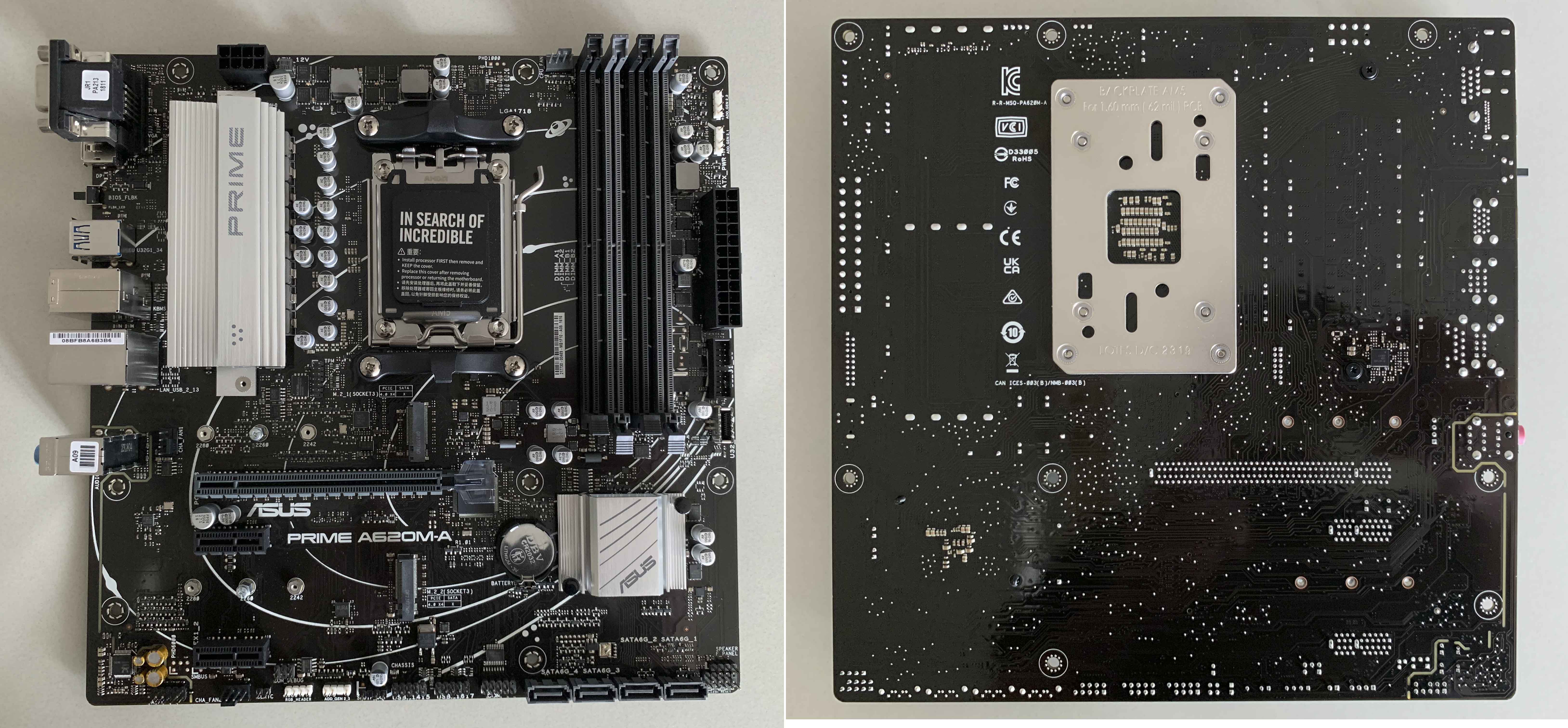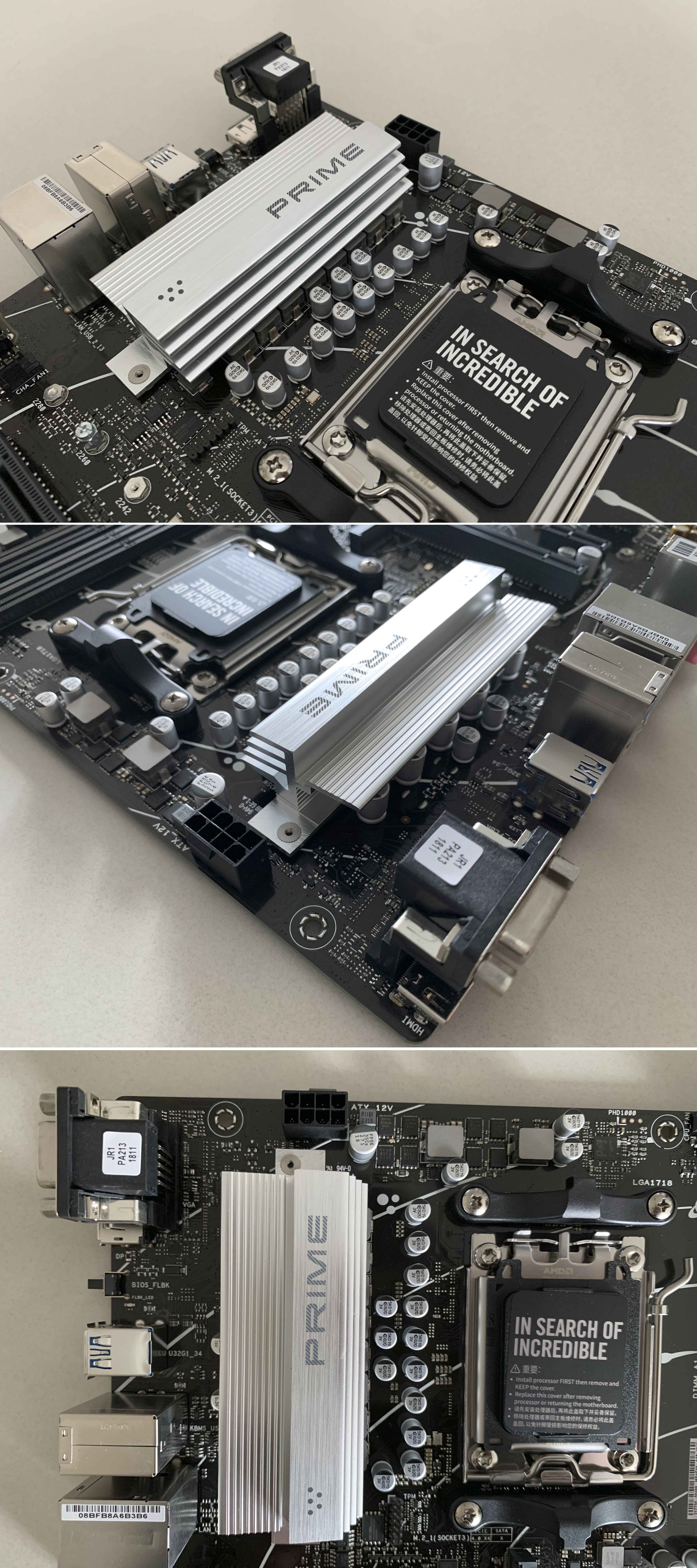 ASUS PRIME A620M-A는 mATX 폼팩터 사이즈는 24.4 x 24.4 cm입니다. 6레이어 PCB 설계되었으며, 블랙 PCB 바탕에 실버 방열판에 새겨진 PRIME 글씨와 칩셋 방열판의 ASUS 로고가 새겨진 아이덴터티 디자인입니다. 보증기간이 3년인데, 대원CTS 유통 제품인만큼 AS는 믿고 사용할 수 있습니다.