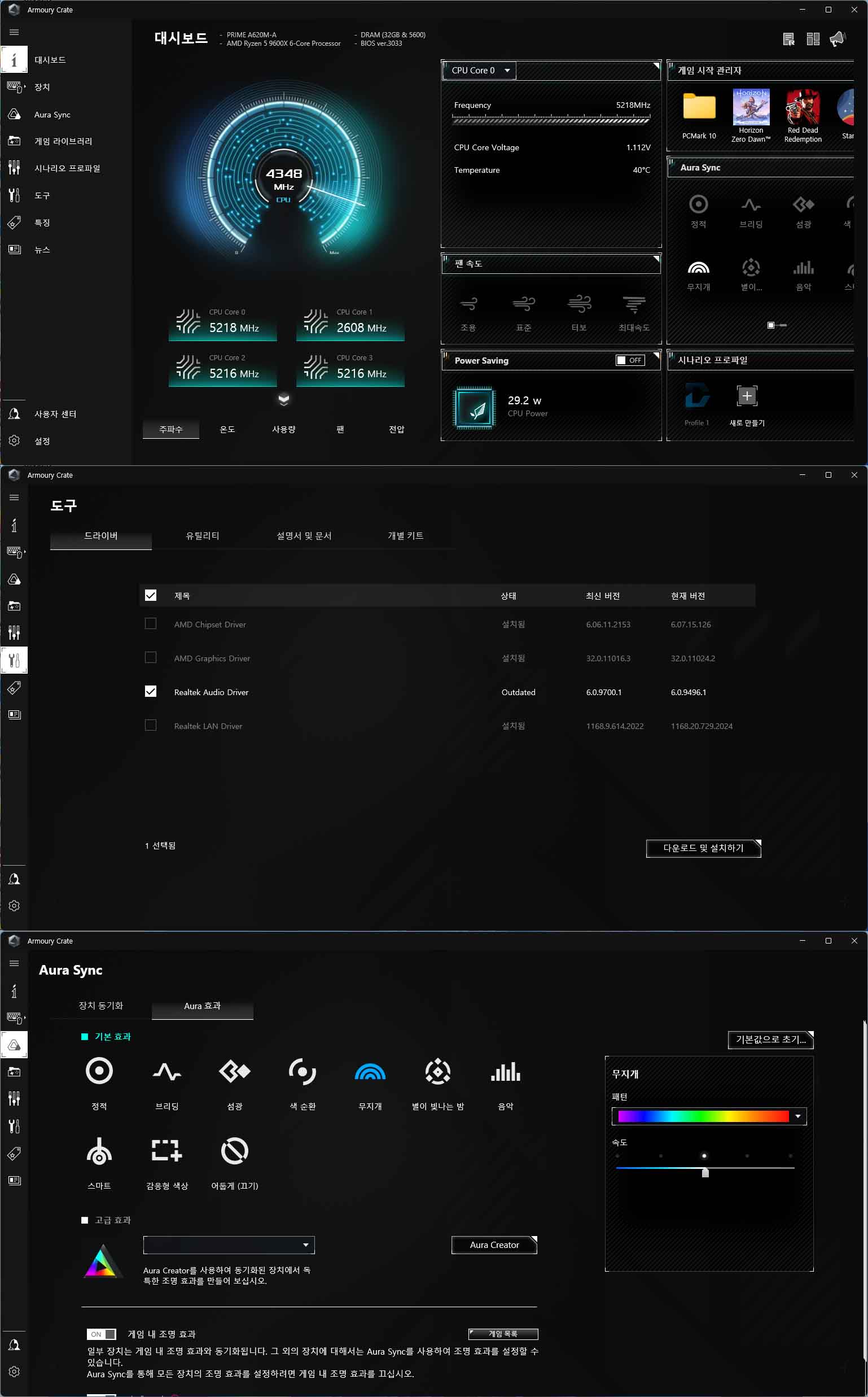 ASUS 메인보드에서 지원하는 소프트웨어 Armoury Crate를 설치합니다.