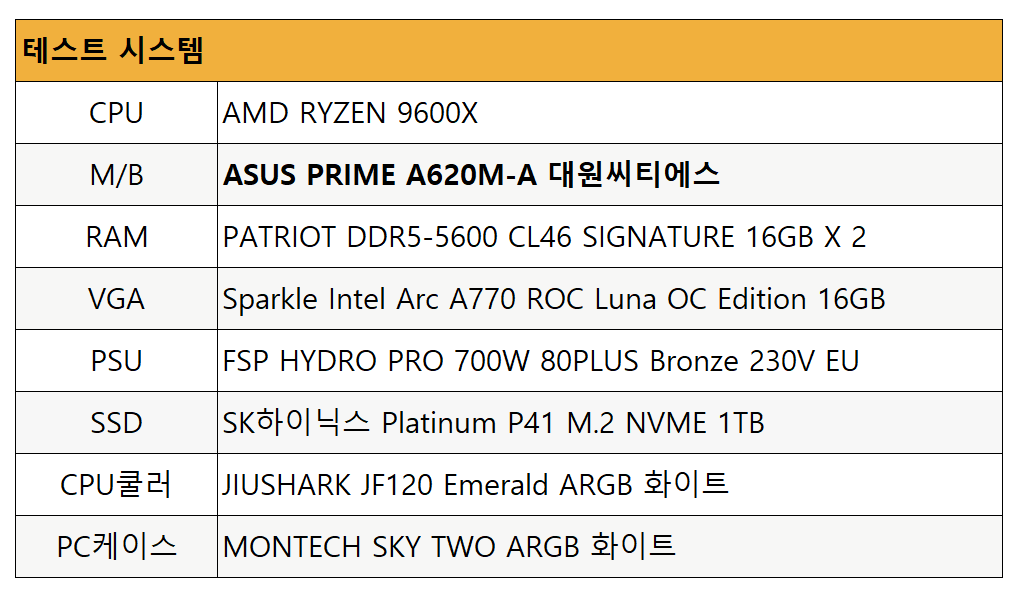 지금까지 ASUS PRIME A620M-A 대원씨티에스 메인보드에 대해서 살펴보고, 조립 및 테스트를 해보았습니다.