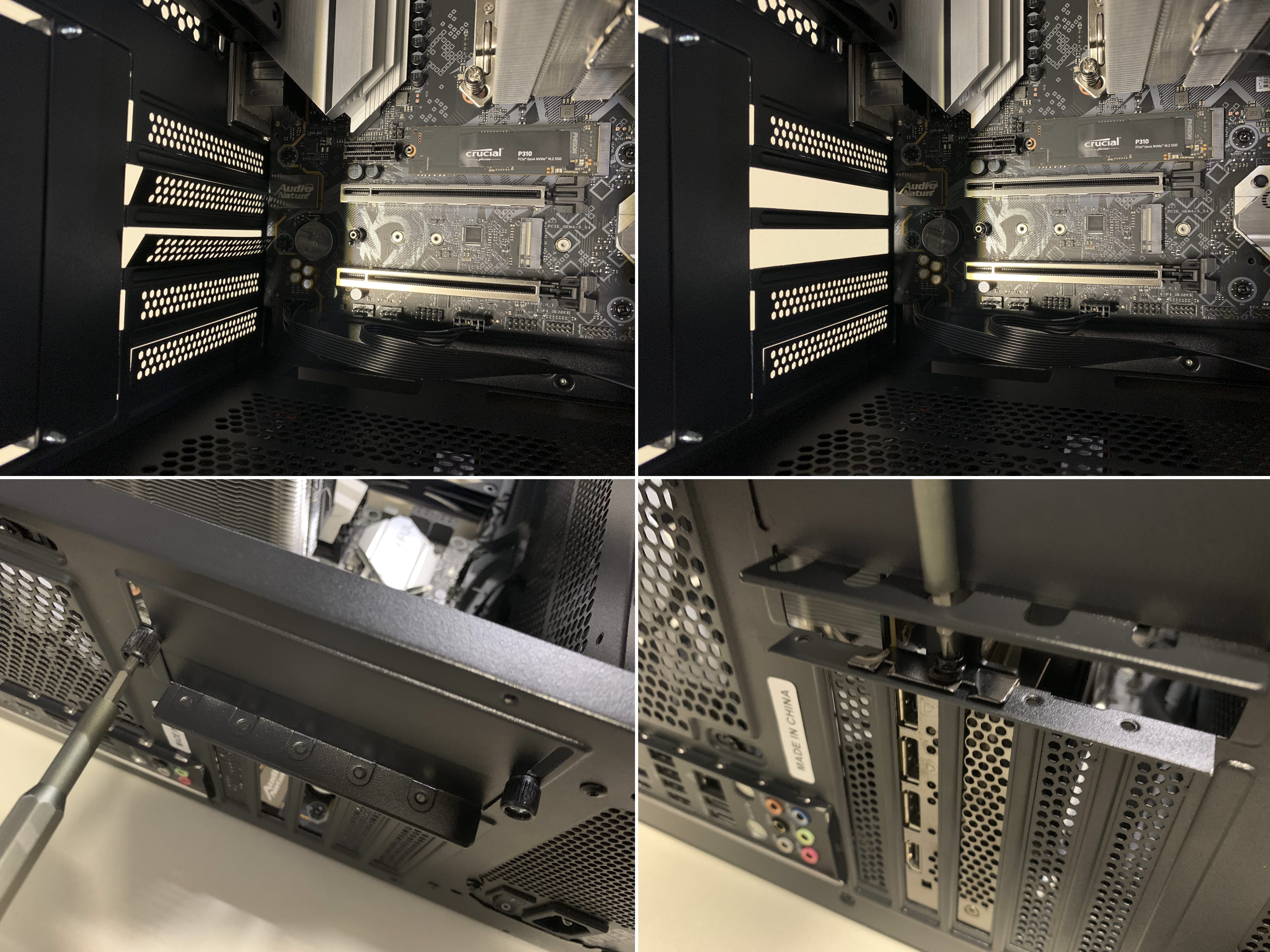 PCI 슬롯을 잡고 흔들어 분리한 다음, 그래픽카드를 장착합니다.