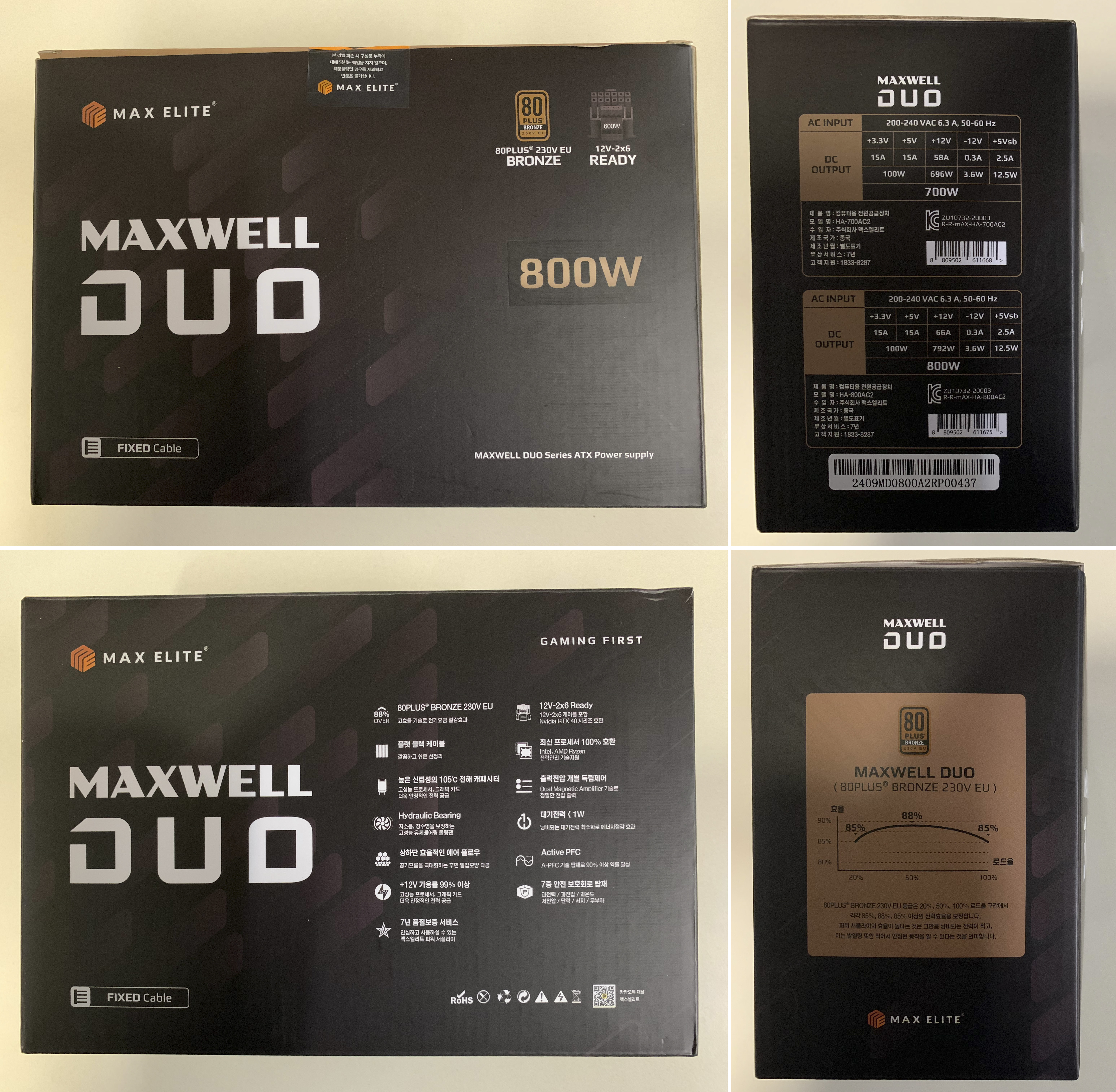 MAXWELL BARON 시리즈는 오랜 기간 많은 사용자들을 통해서 높은 성능과 품질이 검증 되었으며, 아주 낮은 불량율로 유명합니다. MAXWELL DUO 시리즈는 그 기술력을 계승하고, 가격과 서비스를 특징으로 새롭게 등장하게 되었는데, 그 중 가성비가 뛰어난 맥스엘리트 MAXWELL DUO 800W 80PLUS브론즈 PCIE5 플랫 파워서플라이 리뷰 소개시작하겠습니다.