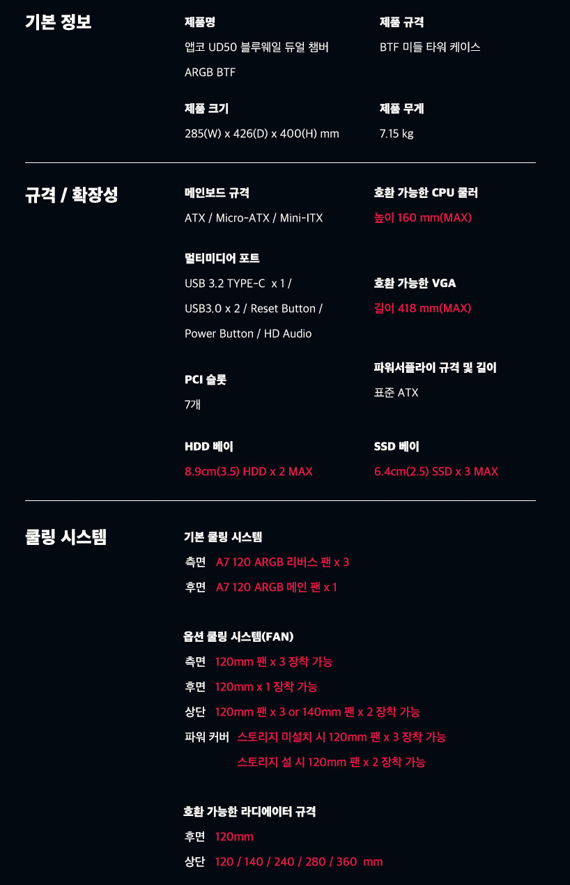 지금까지 앱코 UD50 블루웨일 ARGB BTF 케이스를 살펴보고, 조립 및 실사용을 해보았습니다.