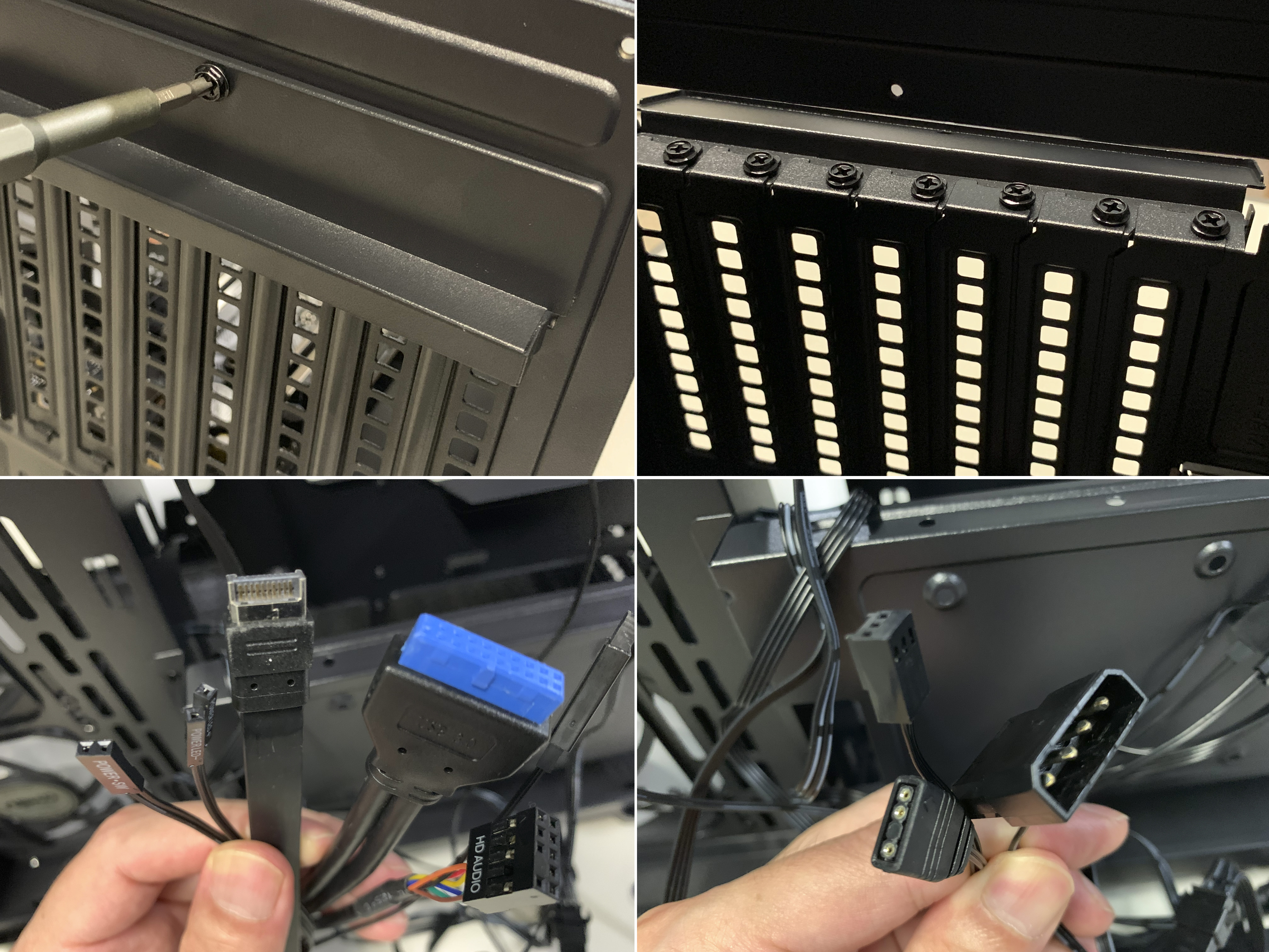 파워케이블 장착 파워 서플라이를 나사 4개로 고정하고, 24핀 전원, 8+4핀 보조전원, Type-C, HD-Audio 등 케이블을 각각 연결합니다.