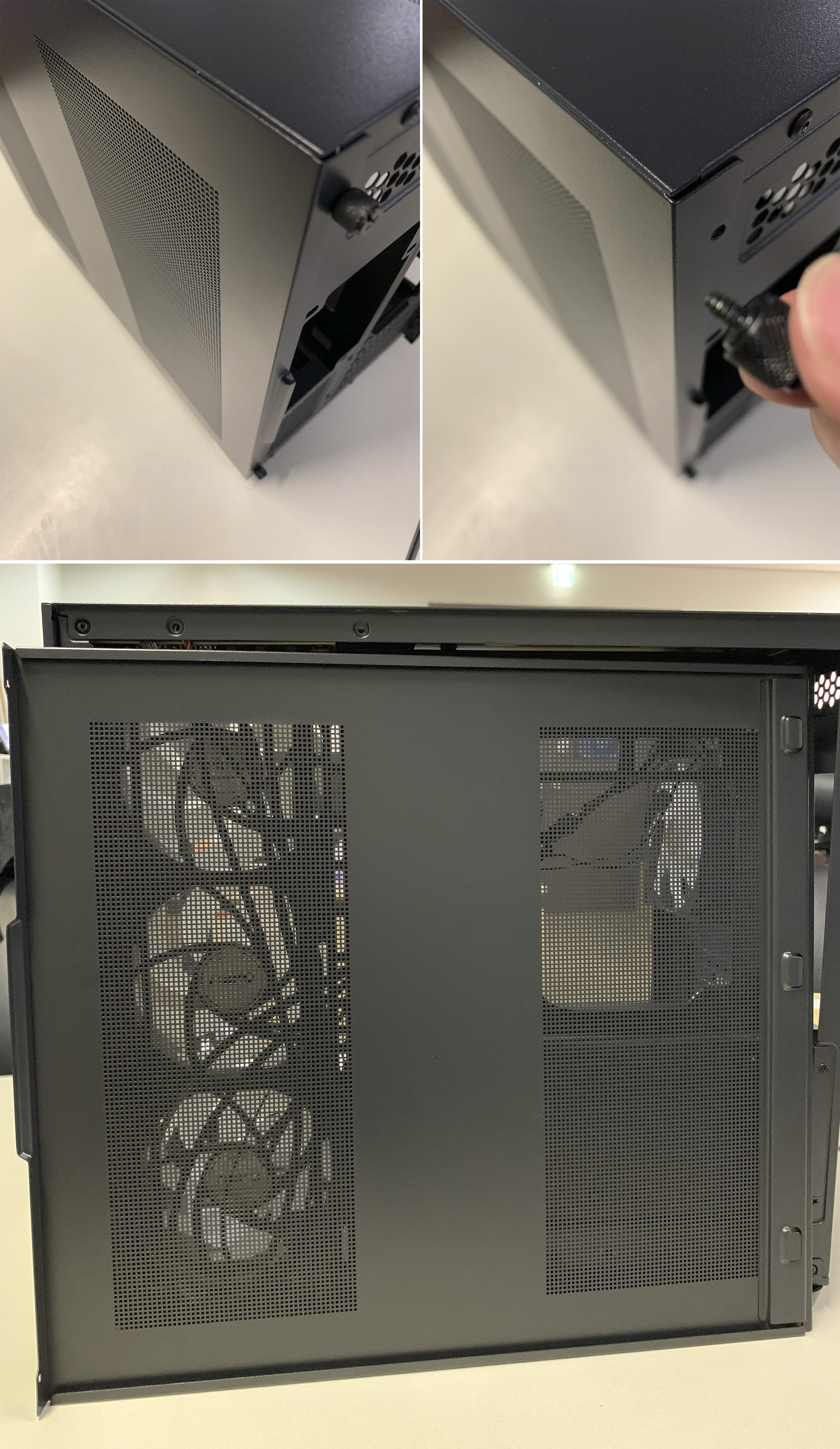 측면 패널 또한 손나사를 이용하여 도구 없이 쉽게 탈부착이 가능하며, 슬라이딩 방식으로 패널로 조립 난이도를 낮추었습니다.