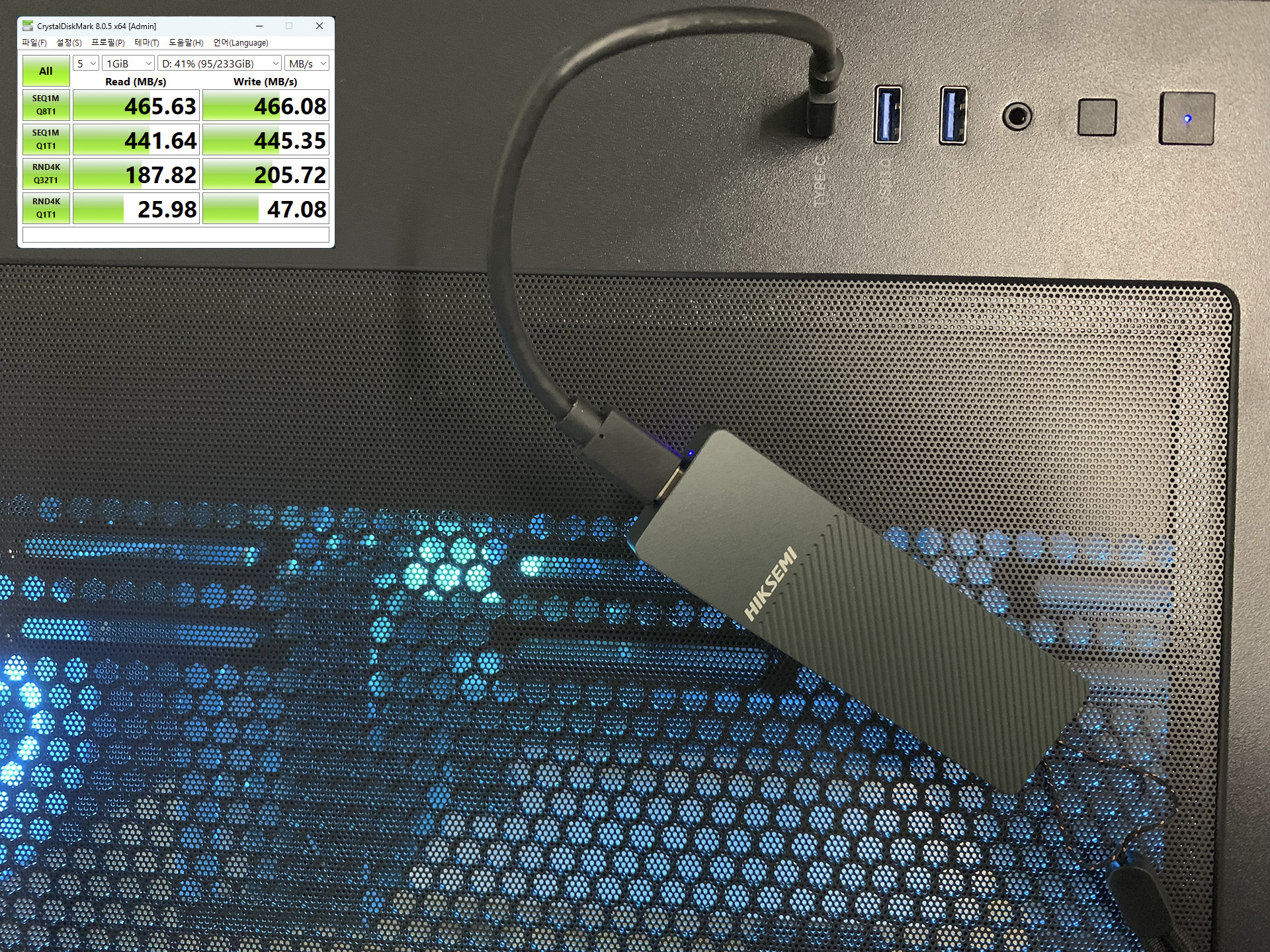 하지만 테스트에 사용한 메인보드가 최대 5Gbps 를 지원하여, 크리스탈 디스크마크 프로그램으로 측정한 결과 5Gbps의 속도가 측정되었습니다. 메인보드에서 더 향상된 속도를 지원한다면 대용량 데이터를 옮기는 일이 잦더라도 쾌적하게 사용할 수 있습니다.
