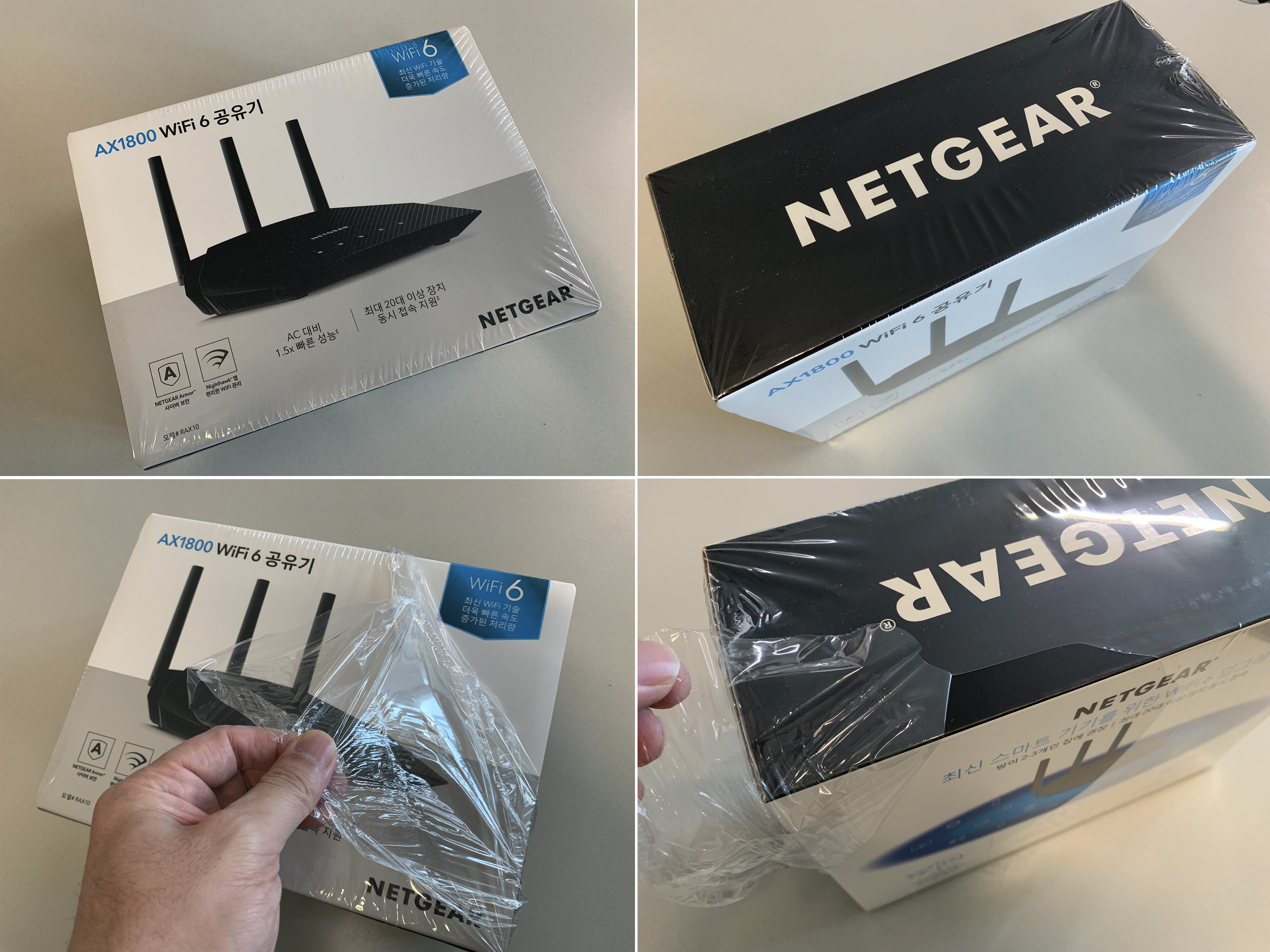 넷기어 RAX10 유무선공유기는 압착 비닐로 완전 밀봉된 포장 상태로 제품을 잘 보호되어 있습니다.