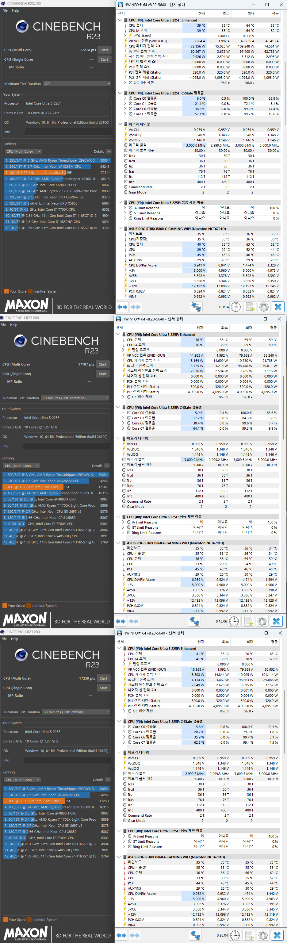 CINEBECH R23 프로그램에서 1회 / 10분 / 30분 실행한 결과입니다.