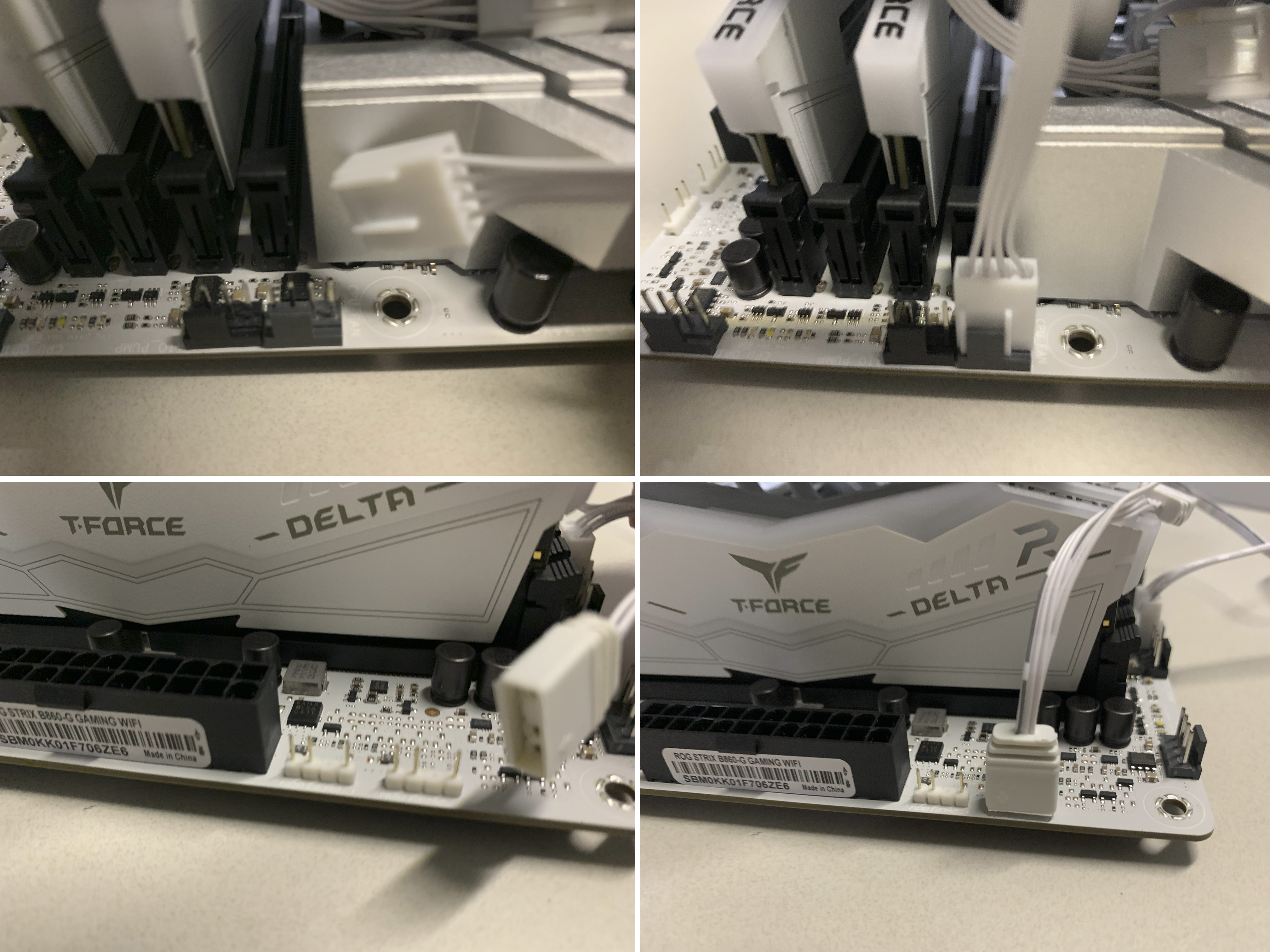 4핀 커넥트와 5V 3핀 ARGB는 촬영한 사진 처럼 메인보드에서 적당한 위치한 포트에 연결하여 조립을 마무리 합니다.