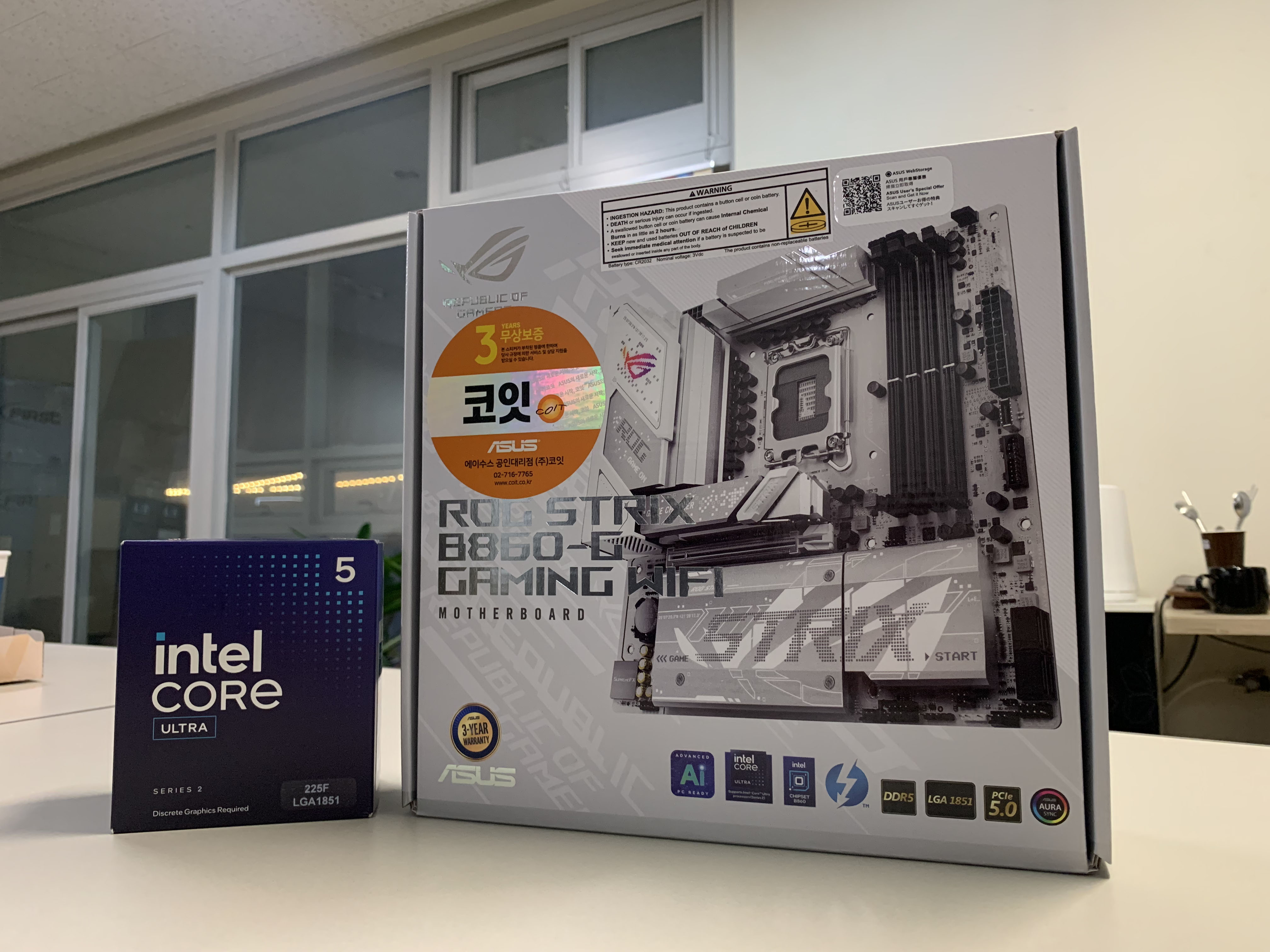 그럼 ASUS ROG STRIX B860-G GAMING WIFI 코잇을 인텔 코어 울트라5 225F와 함께 소개 시작하겠습니다.