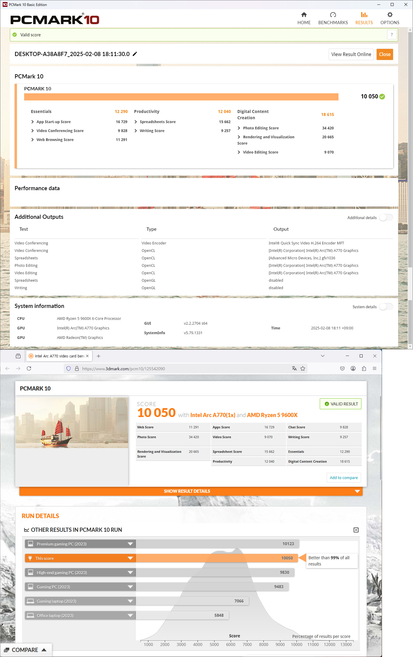 PCMARK10 프로그램에서 실행한 결과입니다.