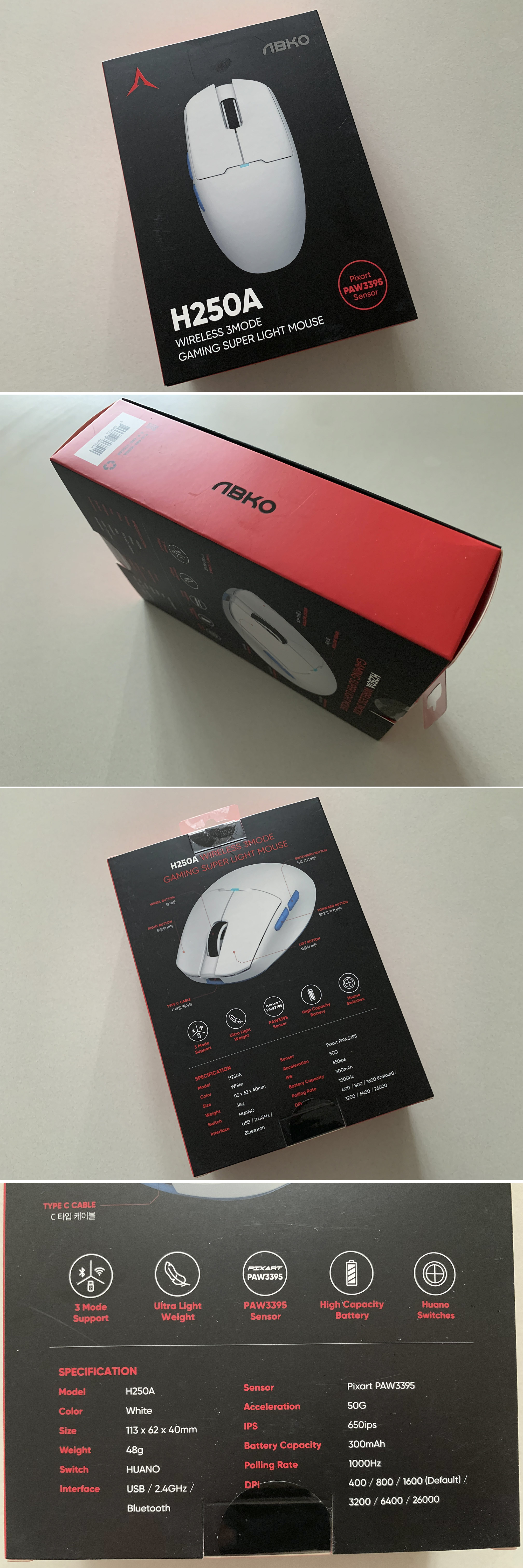 앱코(ABKO) H250A는 3가지 모드(유/무선/리시버) 및 3개 기기 동시 연결을 지원, PAW3395 센서가 채용, 48g의 초경량 무게를 자랑하는 마우스인데, 약 10일간 사용하고 느낌점으로 리뷰해보겠습니다.