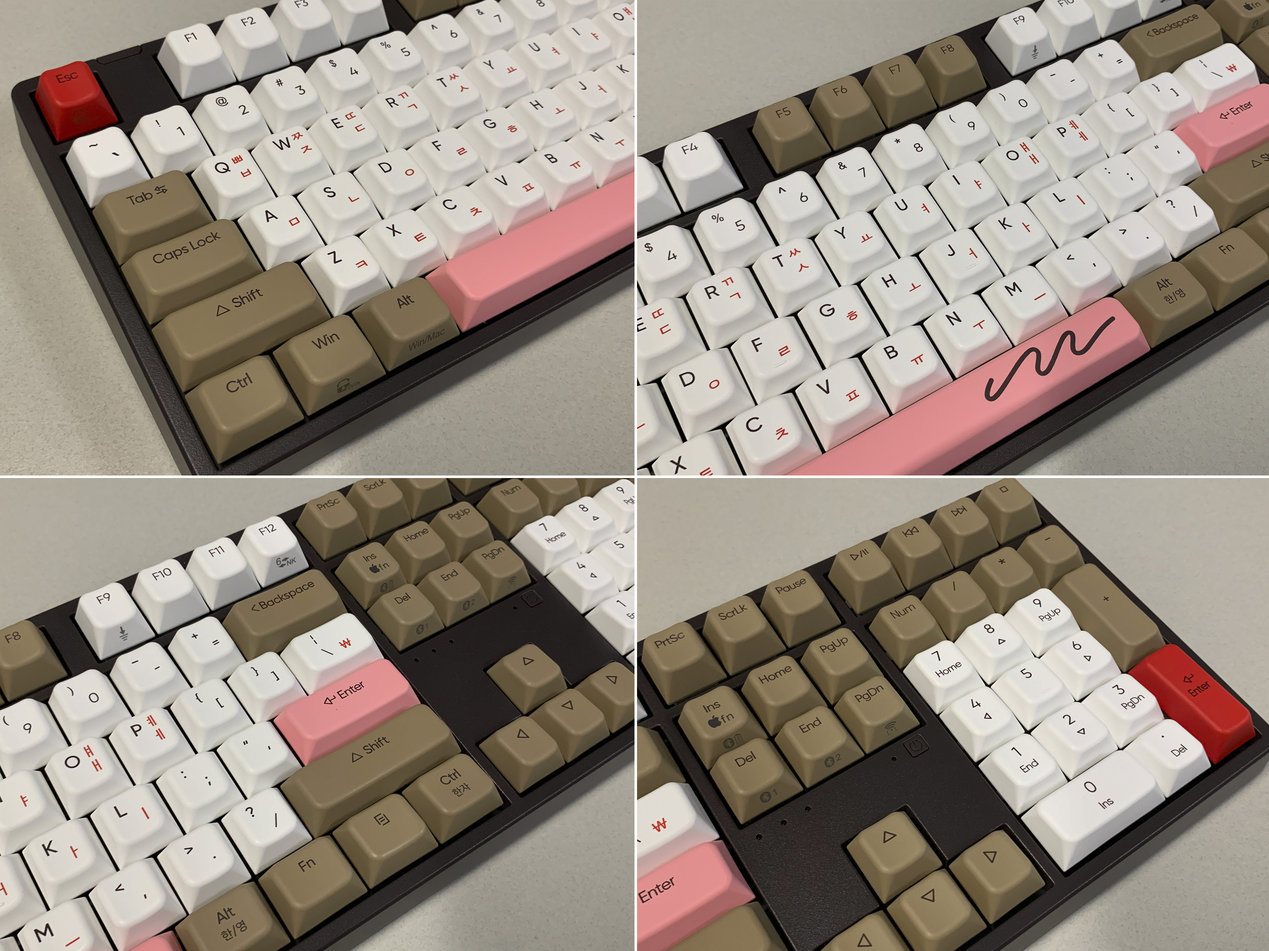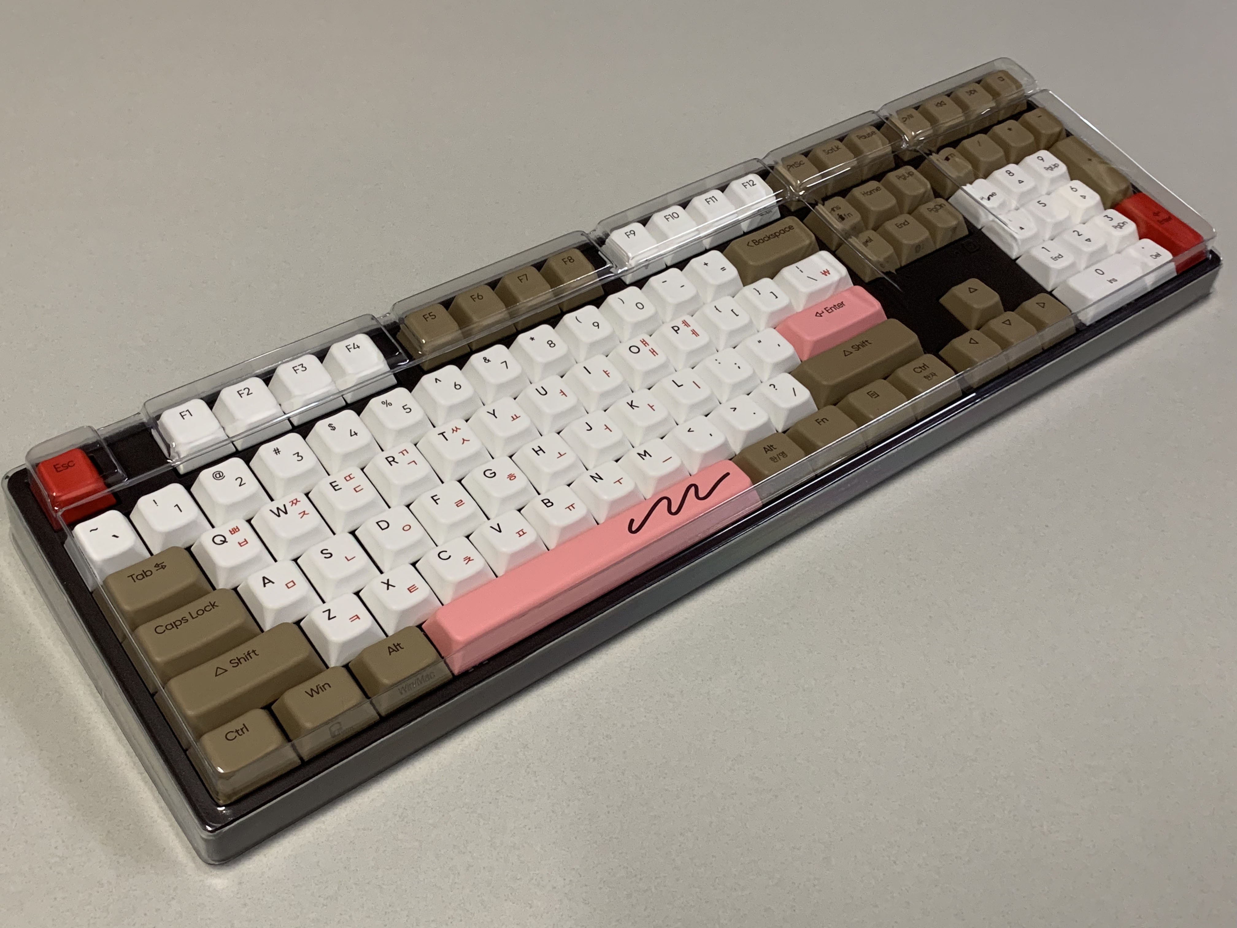 초콜릿 모양의 라운딩 처리된 키캡이 진짜 초콜릿을 연상케 할 만큼 완성도가 높습니다. 영문, 한글 각인이 쨍할 정도로 선명하여 아주 가독성이 좋습니다. 앱코의 염료승화 공정은 특수필름을 사용해 PBT 키캡에 디자인을 고운으로 입히는 방식이라니까, 내구성이 뛰어날것으로 기대하고 있습니다.