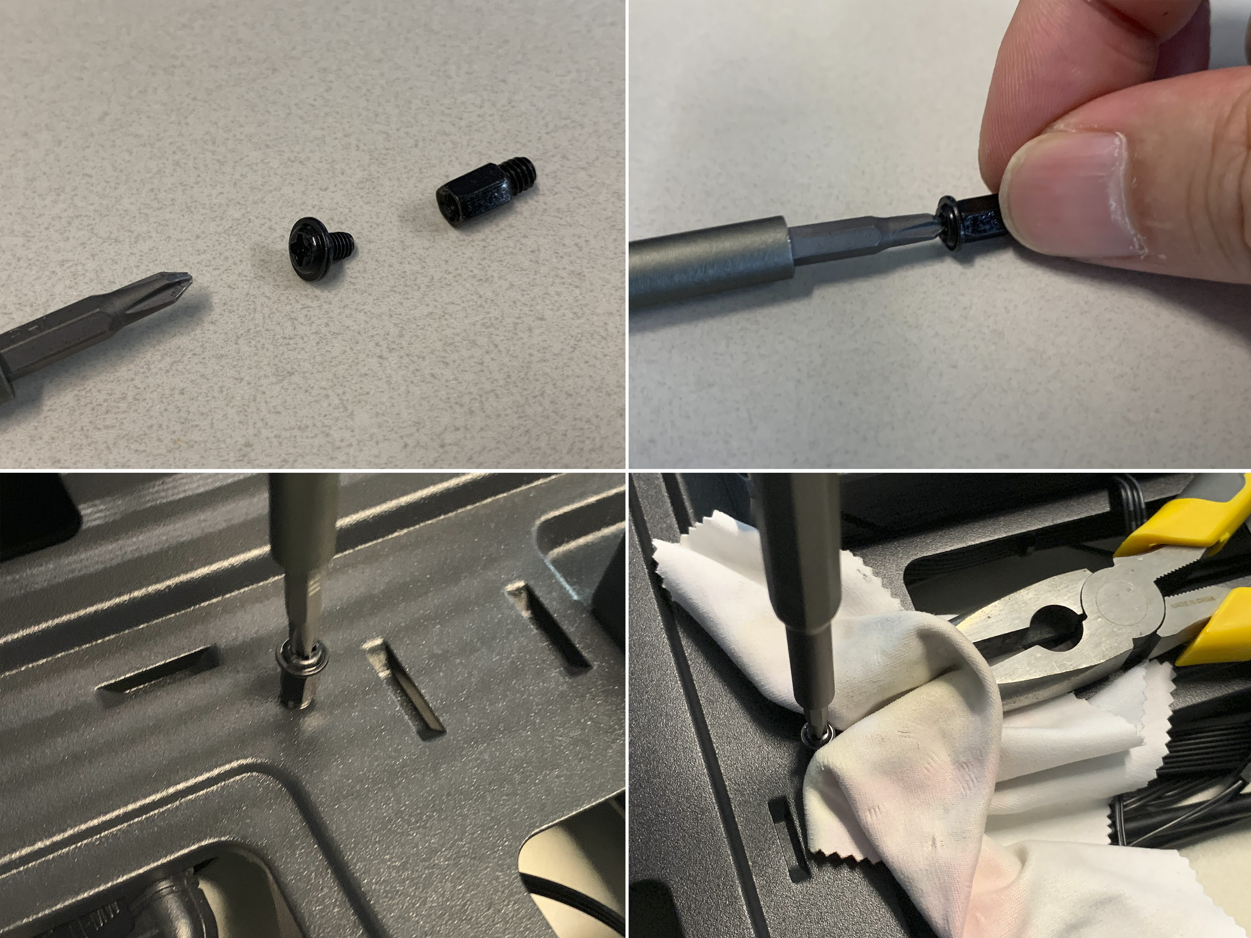 고정나사와 기둥(스탠드오프)을 미리 연결한 다음, 케이스에 기둥이 고정되도록 설치합니다.