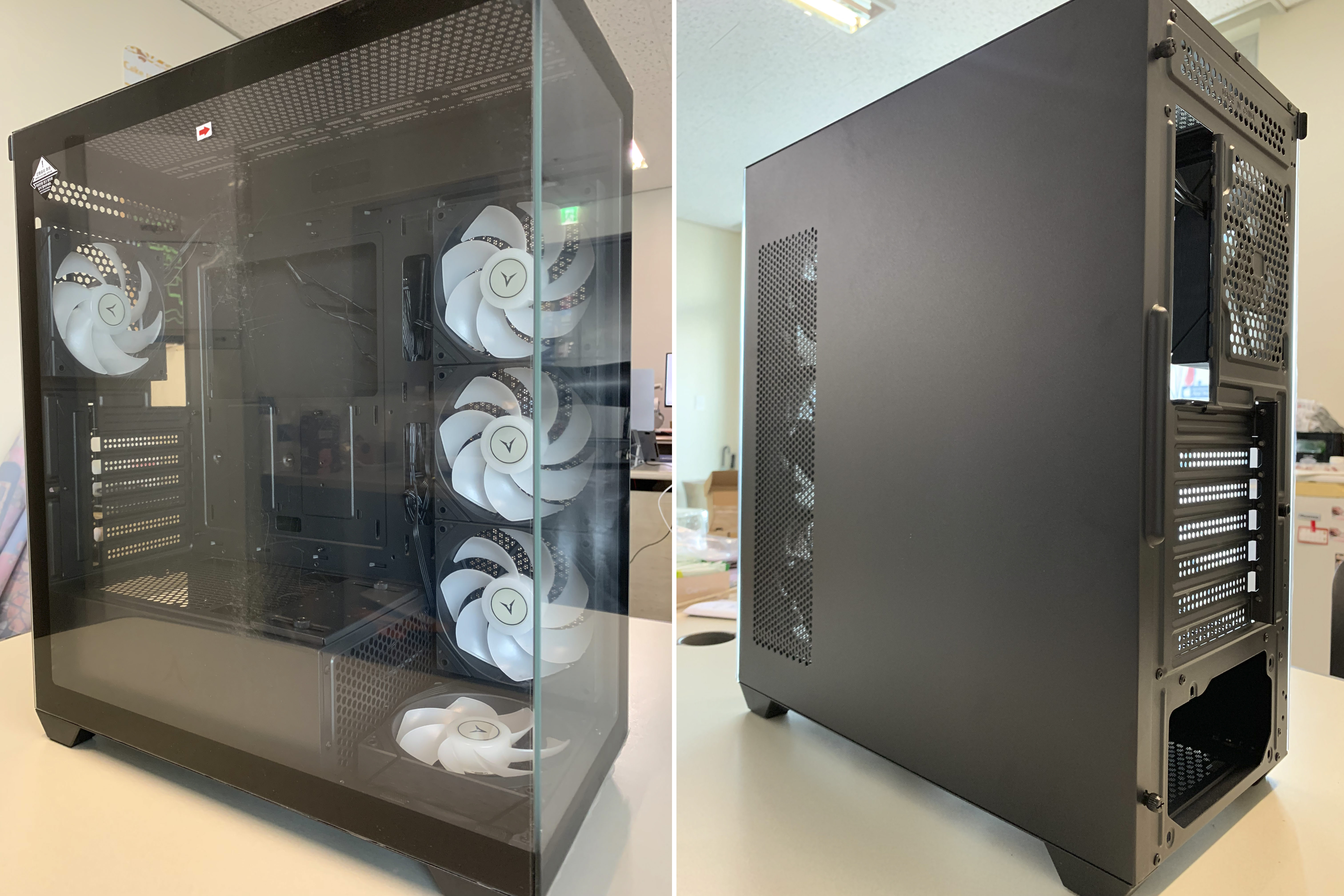 - 개방감이 좋은 어항케이스의 취약점을 기본 5팬 기본 장착으로, 쿨링 성능이 보완된 파노라믹 뷰 어항케이스입니다. 고성능 시스템을 구축하여 상단 3열 수냉쿨러를 장착하고 사용하더라도 시원한 쿨링이 기대됩니다.