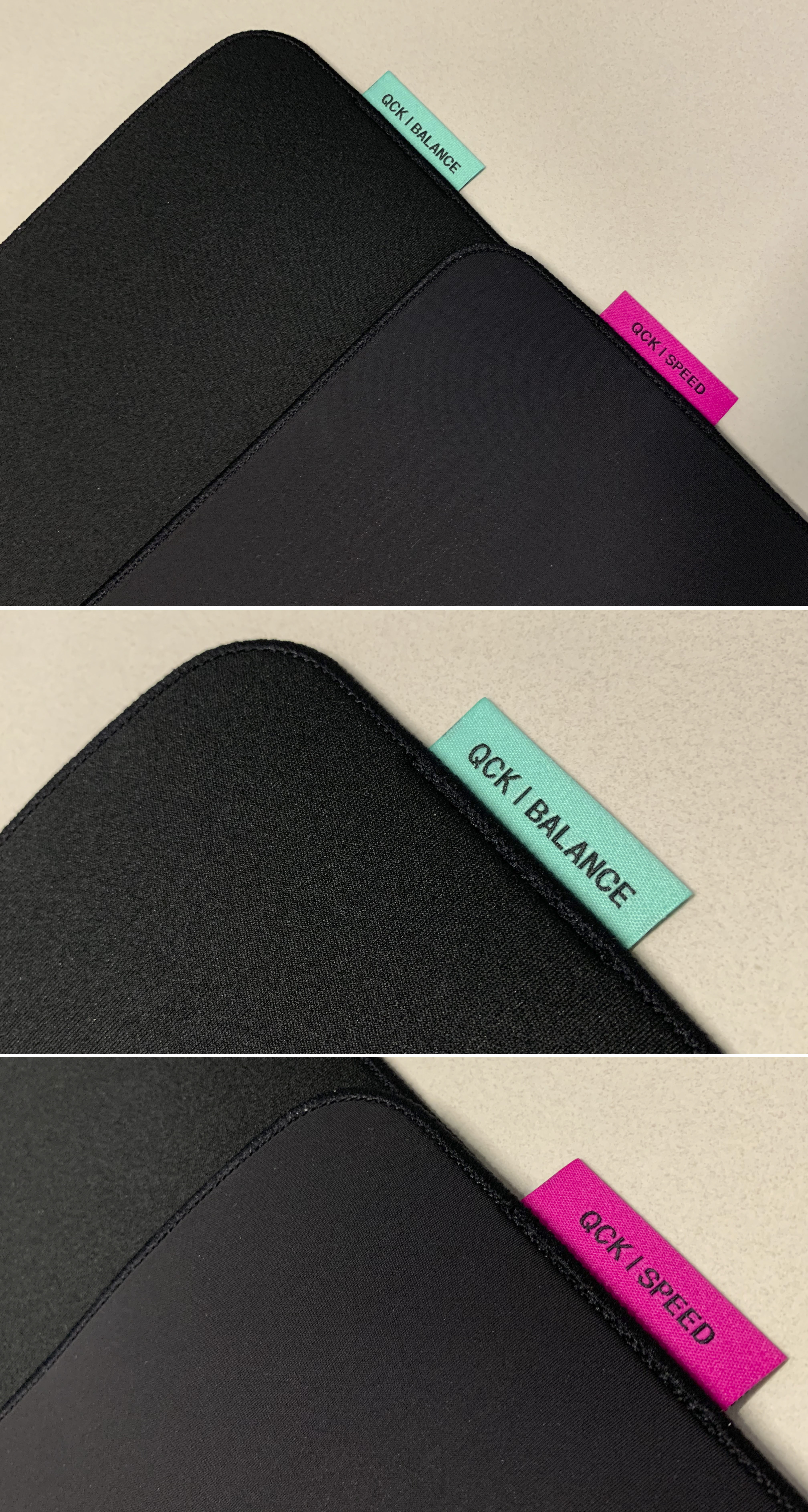 스틸시리즈 QcK Pro 마우스패드 바닥 부분은 밸러스, 스피드 동일한 재질이며, 마우스패드의 30%만 테이블에 닿아 있어도 떨어지지 않을 만큼 미끄러짐 정도가 괜찮습니다.