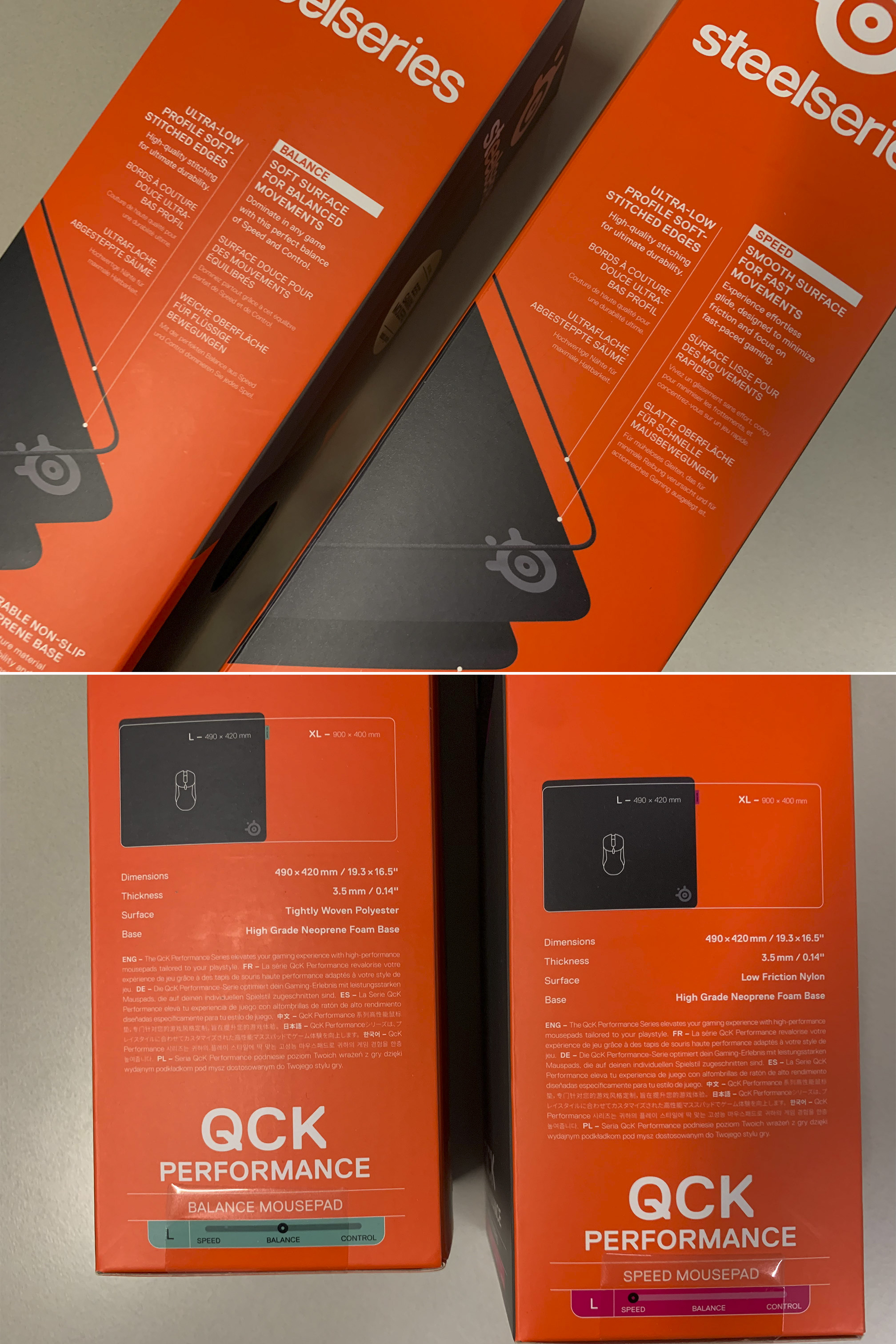 스틸시리즈가 이번에 새롭게 출시한 Qck Pro 라인업 제품 중에 스피드와 밸런스 두 제품을 소개하겠습니다. Qck Pro 스피드와 밸런스는 각각 L, XL 등 두 가지의 사이즈가 있는데, 제가 사용한 제품은 L사이즈입니다.