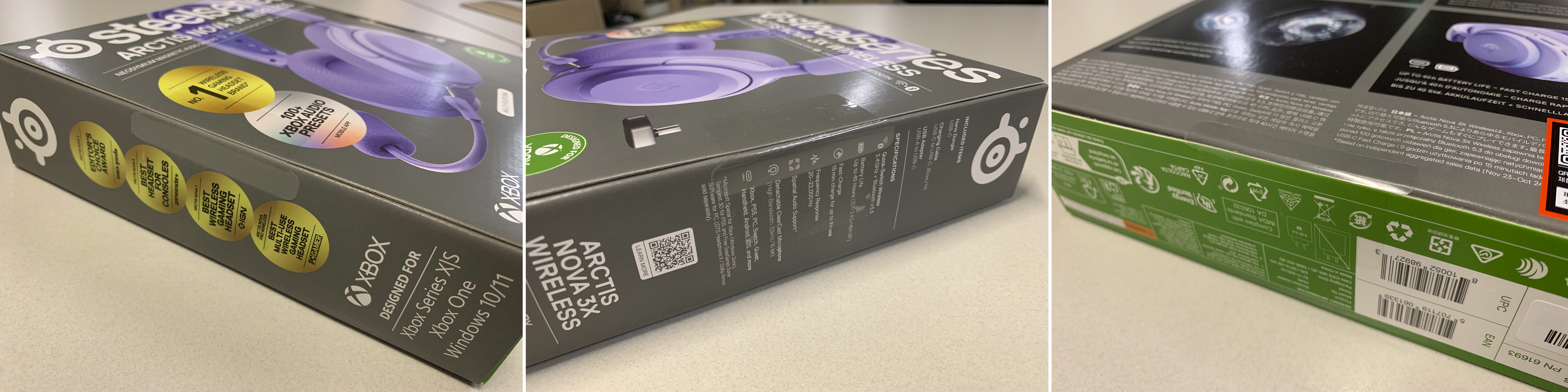 Arctis Nova 3X Wireless는 3군데의 봉인 실(스티커)로 안전하게 보관되어 있습니다.