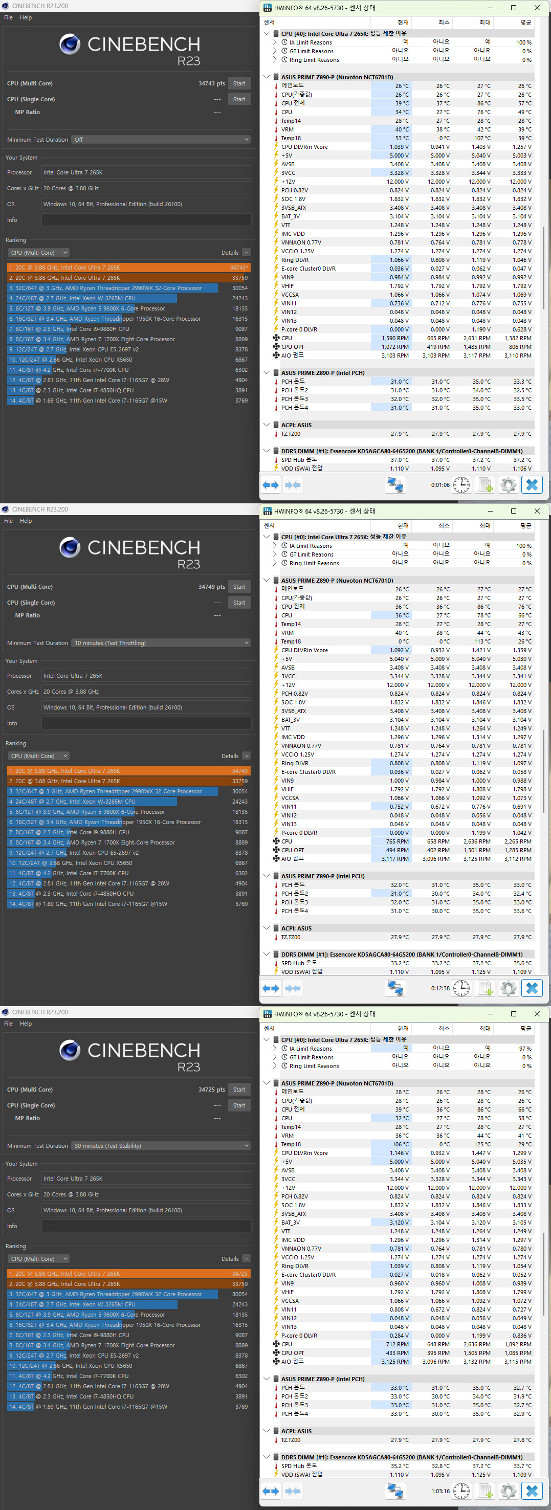CINEBECH R23 프로그램에서 1회 / 10분 / 30 실행한 결과입니다.