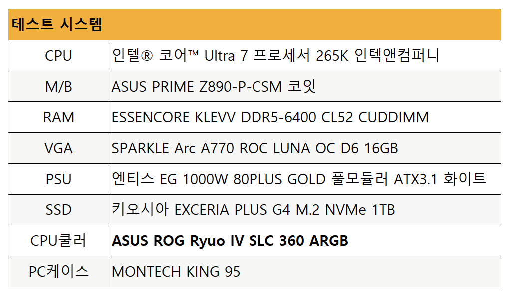 인텔 코어 울트라7 265K 시스템 환경에서 인텔 LGA 소켓 기준으로 조립했습니다.