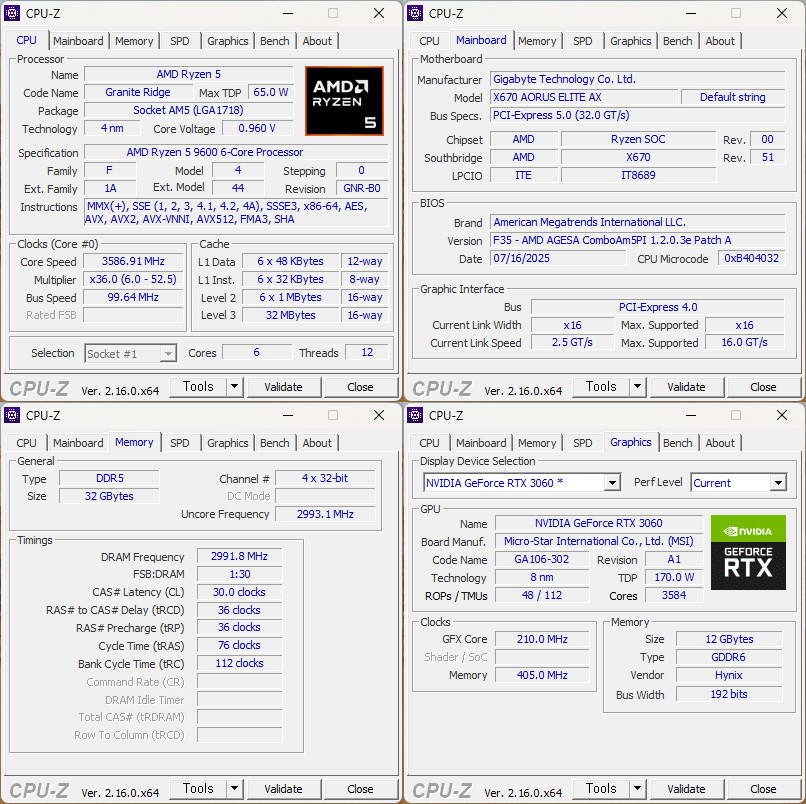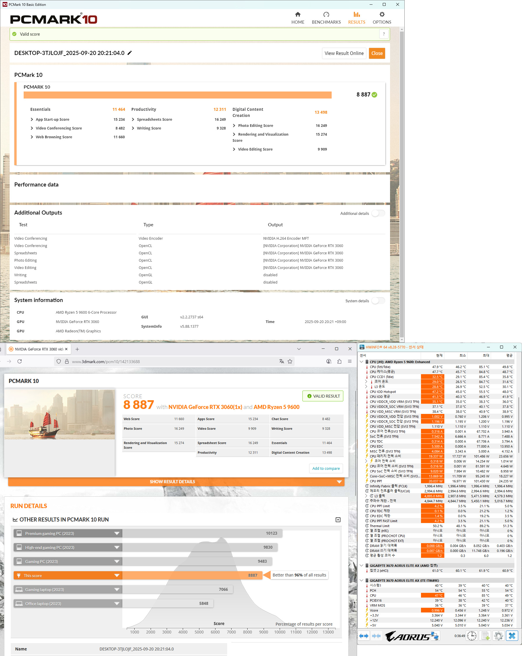 테스트시 라이젠5 9600은 PBO Enable, Curved Optimize All -30, 램 EXPO 6000MHz CL30으로 설정했습니다.