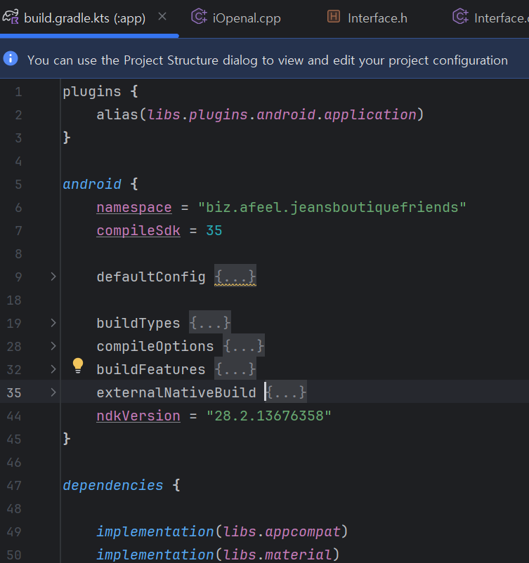 저의 경우 NDK 버전이 여러개가 설치되어, build.gradle.kts(:app)에서 ndkVersion = "28.2.13676358" 입력하여 강제로 해당 버전으로 컴파일 되도록 했습니다.