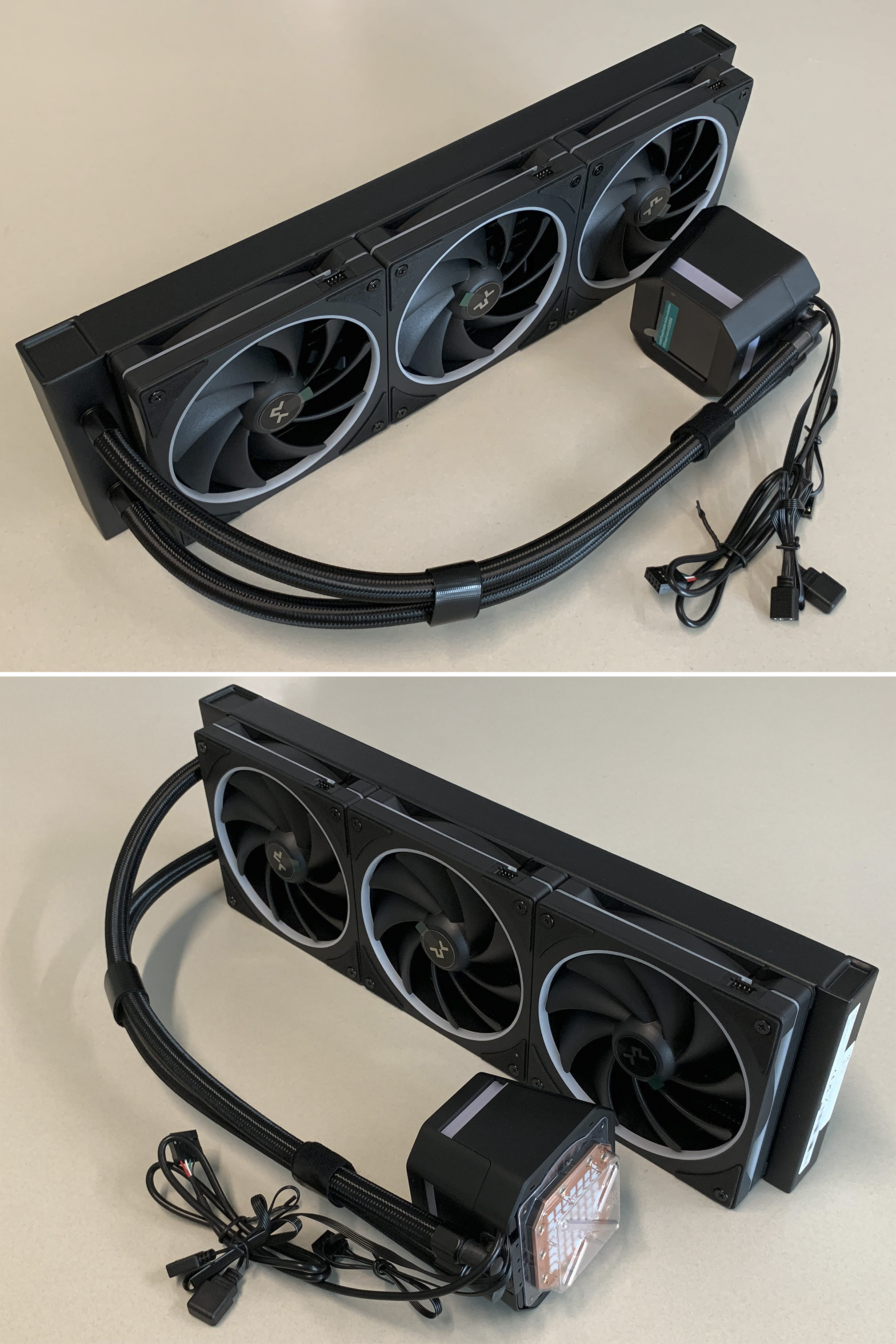 라디에이터와 팬이 결합되어 있어서, 쿨링 팬을 조립하는 과정없이 조립이 간편합니다. 3개의 쿨링팬은 패키지에 포함된 하나의 케이블에 연결하여 케이블 정리가 단조로워 깔끔하게 정돈할 수 있습니다.