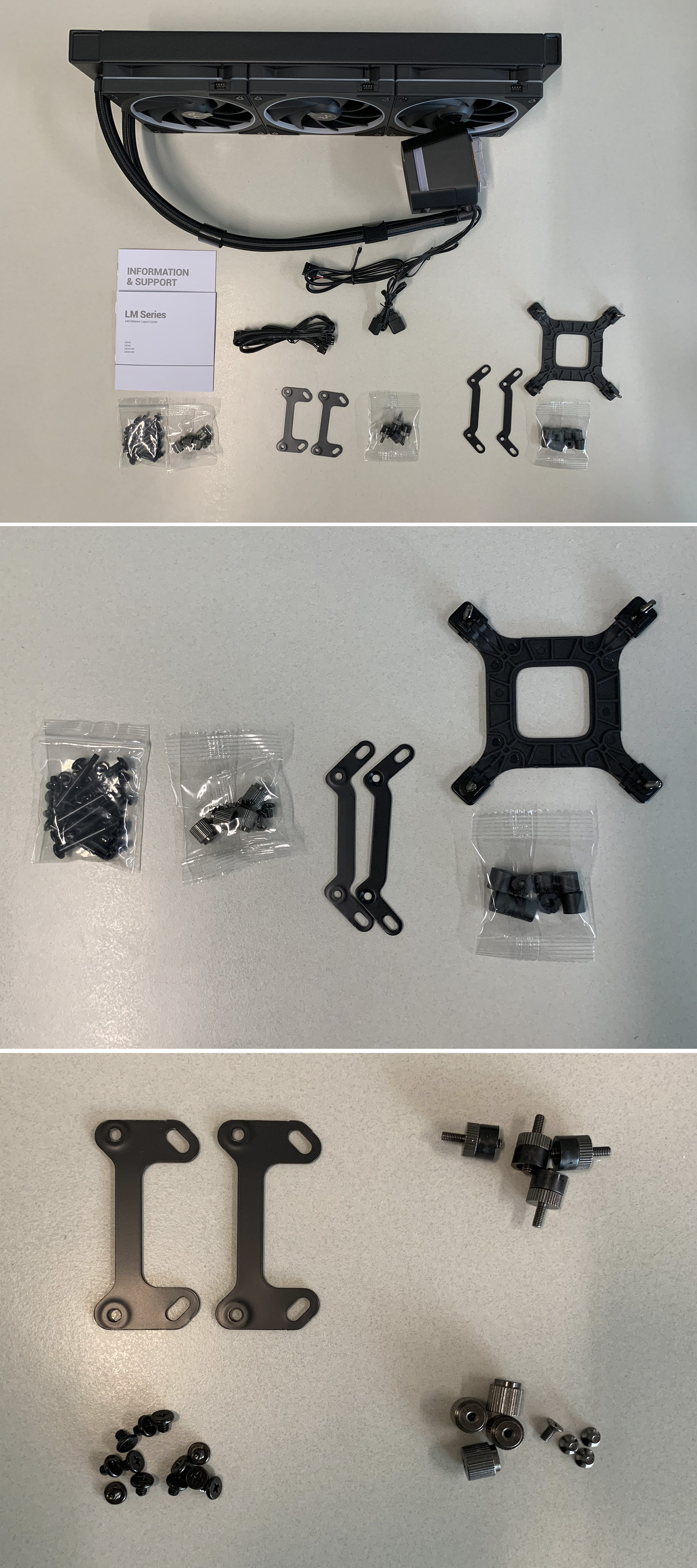 팬과 라디에이터가 이미 조립된 상태이기 때문에, 많은 소켓을 지원하지만 구성이 심플합니다. 사용자 가이드를 참고해서 사용하는 부품만 별도로 분리해보면 부품이 몇개 없기 때문에 사용자 가이드 없이도 쉽게 조립이 가능해집니다.