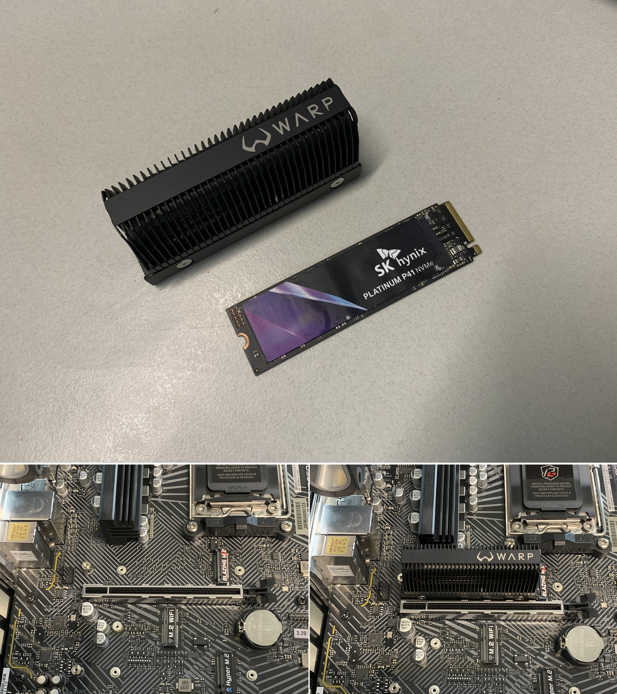 - 또 하나의 단점을 말하자면, PCIe5.0을 지원하는 M.2 첫번째 슬롯에 방열판을 지원해주었으면 좋았을거 같습니다. PCIe 3.0 M.2 NVMe제품을 사용한다면 문제 없겠지만, PCIe 4.0 NVMe 이상 제품을 사용할 경우, 5천원 정도의 방열판을 설치하는 것이 좋습니다.