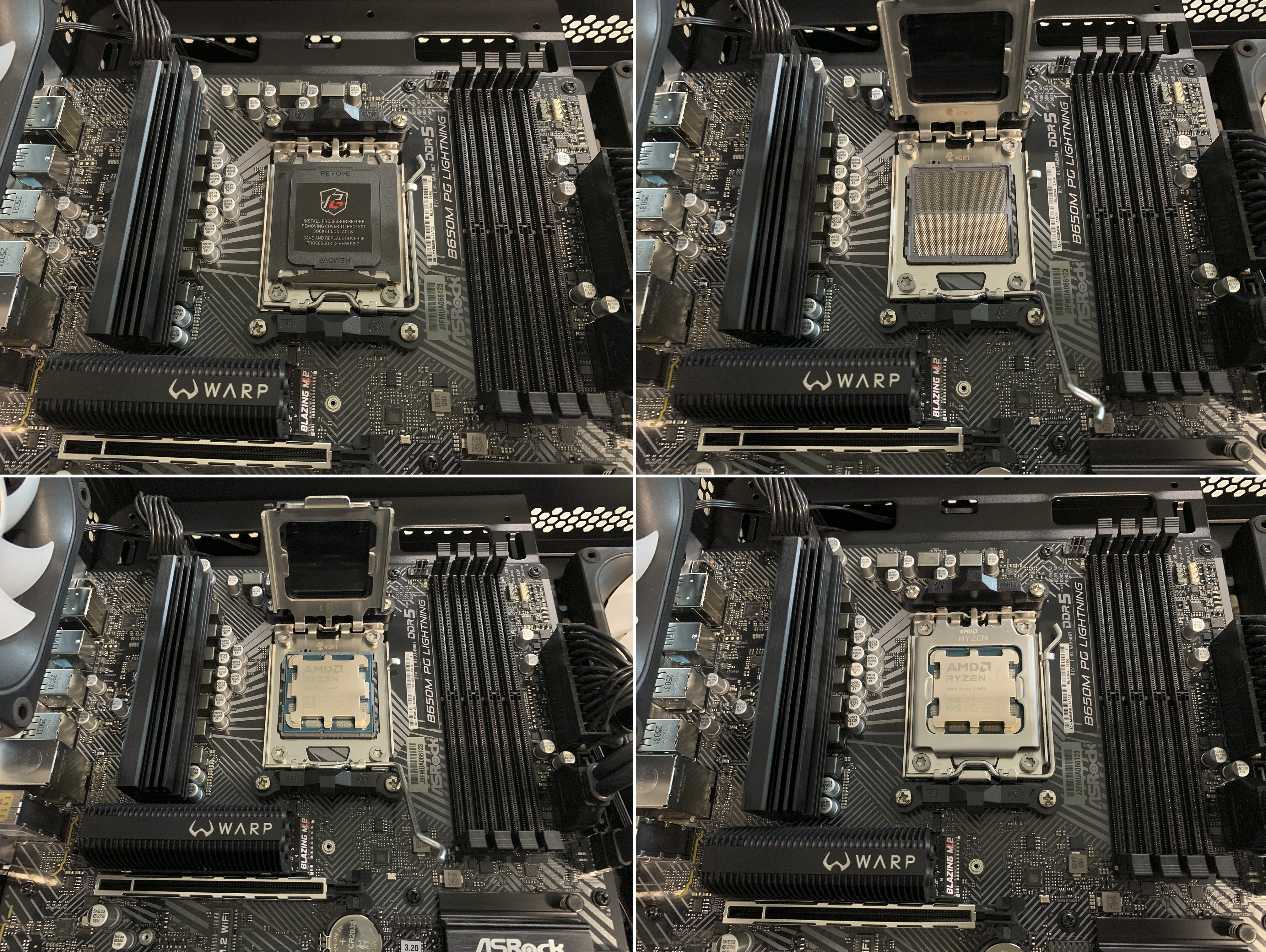 AMD 라이젠5 9600와 CPU쿨러 DEEPCOOL LM360을 순서대로 설치합니다.