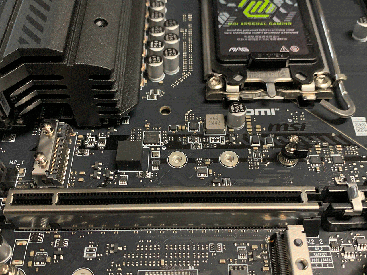 PCIe5.0 M.2 지원을 하기 때문에, 더 성능이 좋은 최신 SSD 제품을 장착한다면 최고의 성능을 뽑아내는 결과를 기대할수 있습니다. 첫 번째 슬롯의 SSD히트싱크가 충분하게 두껍기 때문에 온도도 잘 잡아주는 모습입니다.