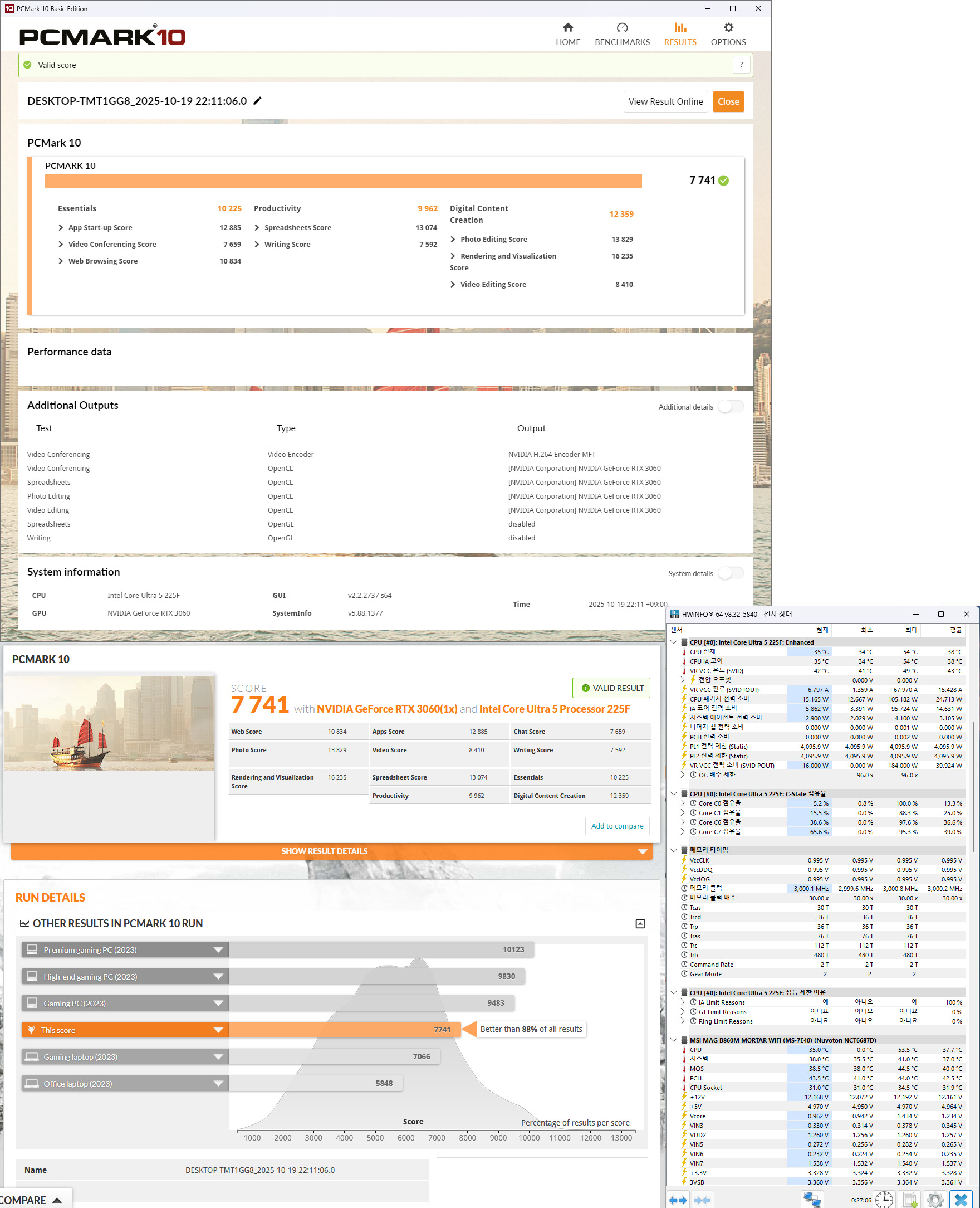 PCMARK10 프로그램에서 실행한 결과입니다.