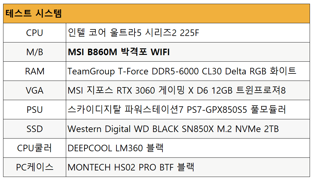 지금까지 MSI B860M 박격포 WIFI 메인보드에 대해서 살펴보고, 인텔 코어 울트라5 225F와의 조합 시스템을 조립 및 테스트를 해보았습니다.