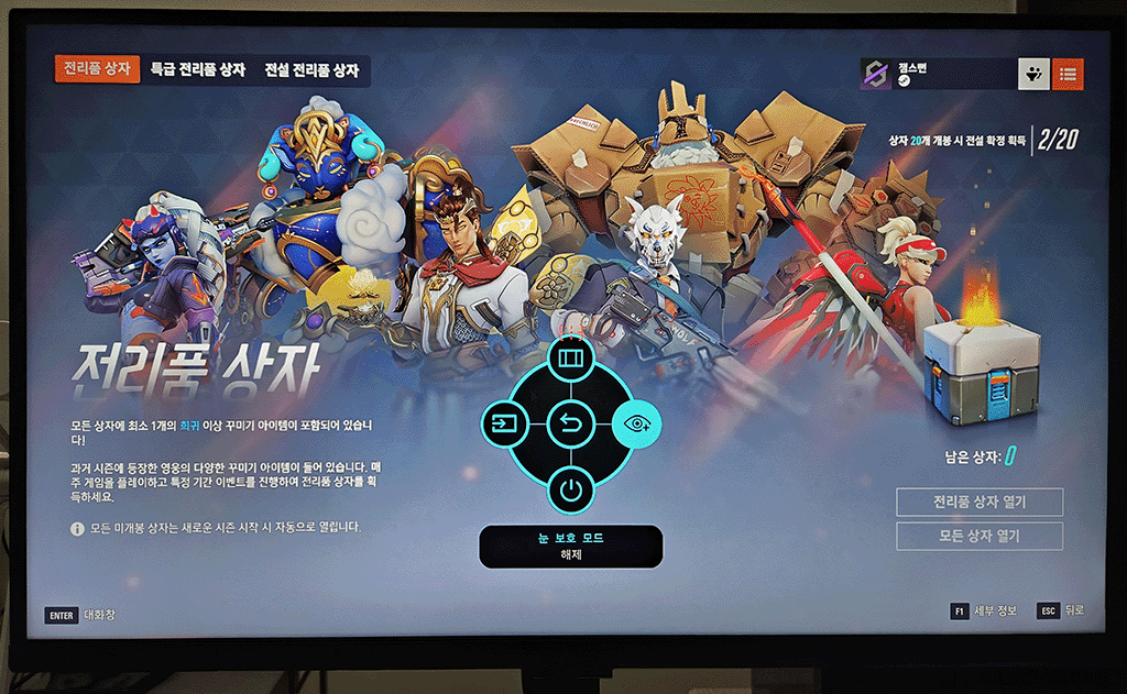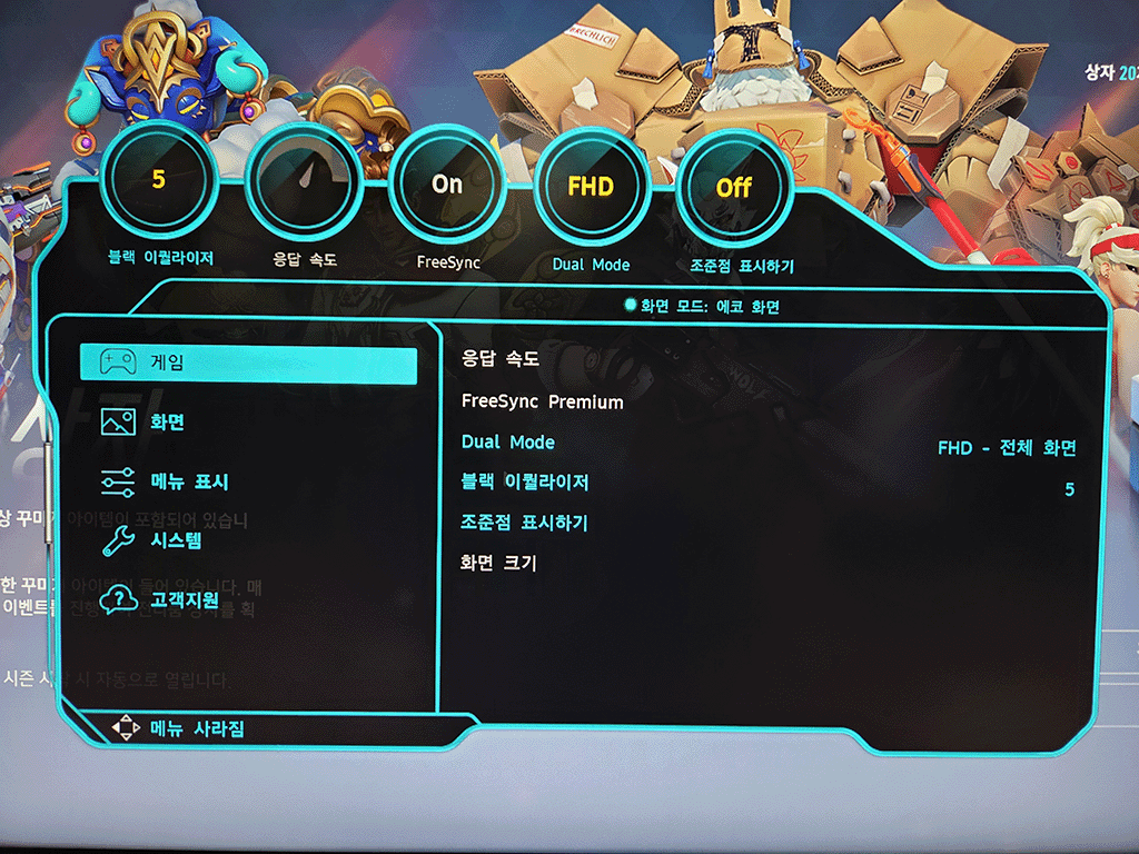 눈 보호 모드 외에도 OSD에서 다른 기능들을 활용할 수 있습니다.