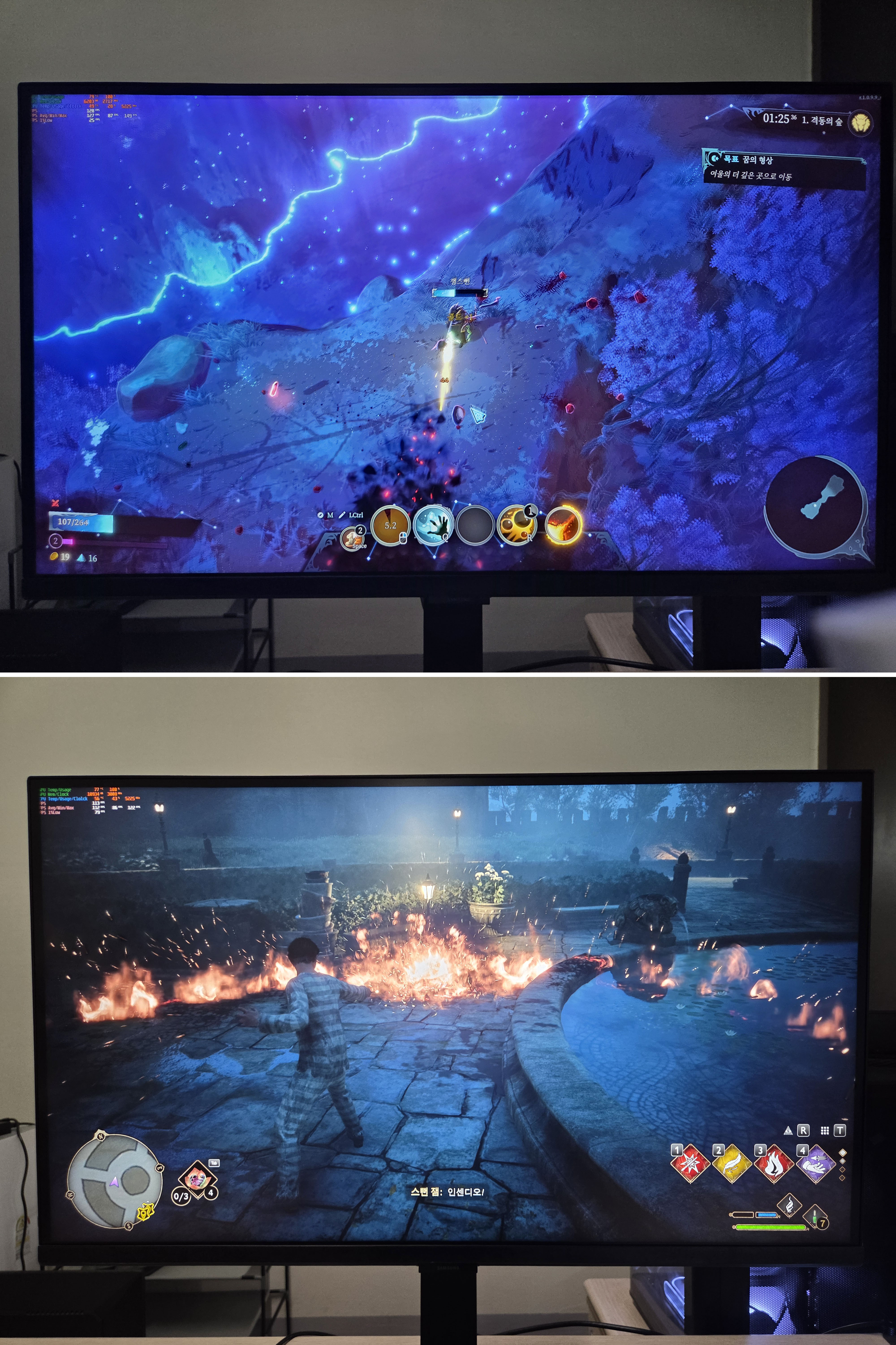 영상미가 좋은 오픈 월드 게임을 즐길때는 4K 해상도로 설정하였습니다. 판타지 게임의 몽환적인 그래픽, 시뮬레이션 게임의 실사와 같은 화질, 타격감 넘치는 화려한 이펙트 등 게임 제작자의 의도가 그대로 느낄 수 있을 정도로 잘 표현되어, 게임하는 내내 화면에서 눈을 떼고 싶지 않을 만큼 깊은 몰입감을 주었습니다.