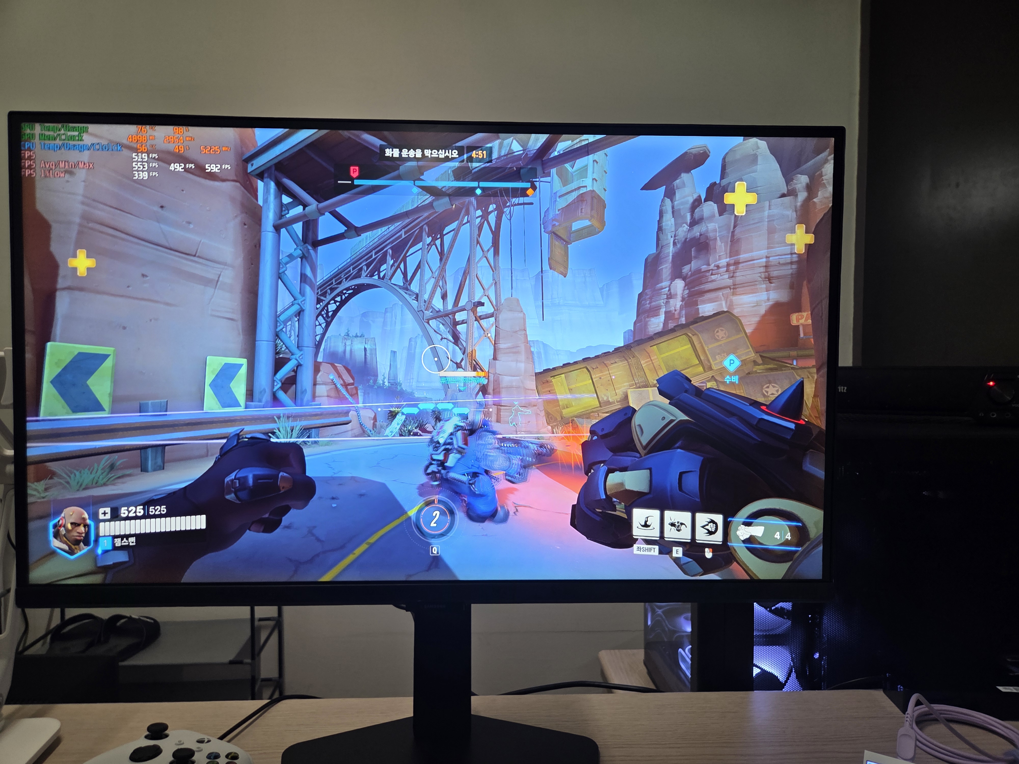 FHD 해상도 360Hz 주사율 모드에서 FPS게임할때, 지금까지 경험하지 못한 탁월한 부드러움과 빠른 반응속도를 체감할 수 있었습니다. 반복적인 화면전환이나 시간이 멈추는듯한 찰나의 순간 교전 상태에서 마치 혼자만 치트키를 사용하는 기분이 들었습니다.