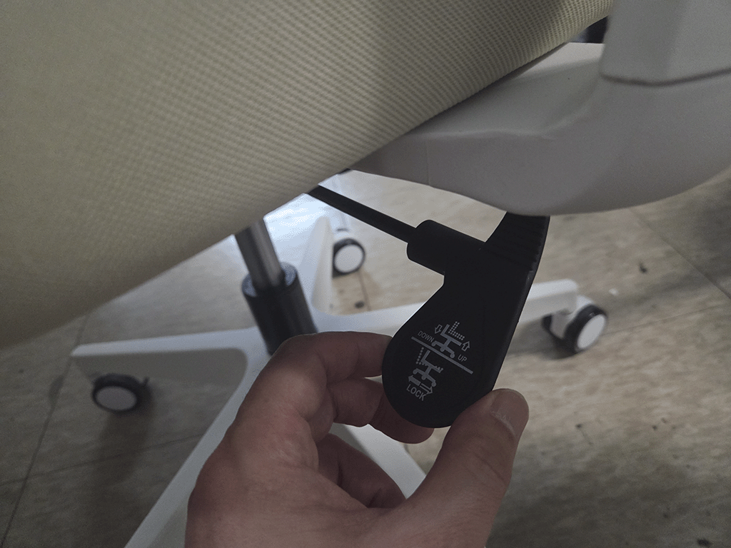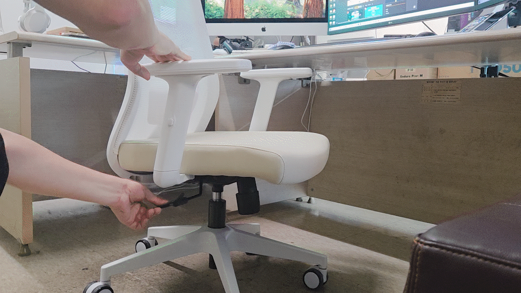 의자 높이를 조절하는 모습인데 최대 10cm까지 조절가능합니다.