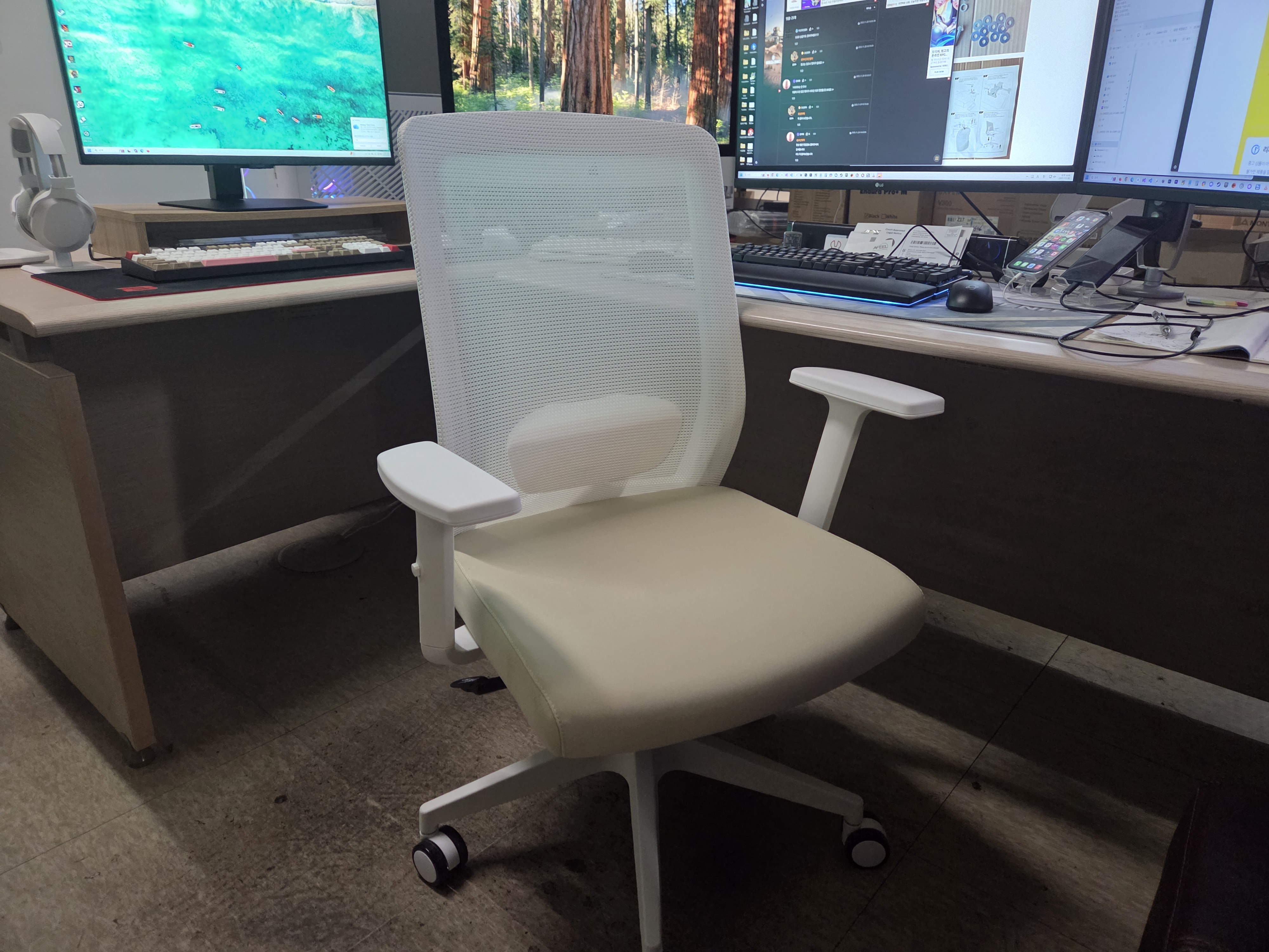 한번 앉으면 장시간 꼼짝없이 앉아 있어야 하기 때문에, 편히 쉬는 듯한 의자보다는 바른 자세를 유지할 수 있는 의자가 더 좋다고 생각하고 있습니다. PC방 의자가 가장 편하지만, 너무 편하기 때문에 사무용으로 앉기에는 마음가짐이 흐트러질까, 의자에 기대는 나쁜 습관이 생기진 않을까, 오랜시간 앉아 생활하는 입장에서 당장의 편안함과 지켜야 할 건강 사이의 갈등이 끝나지 않고 갈등하고 있습니다.