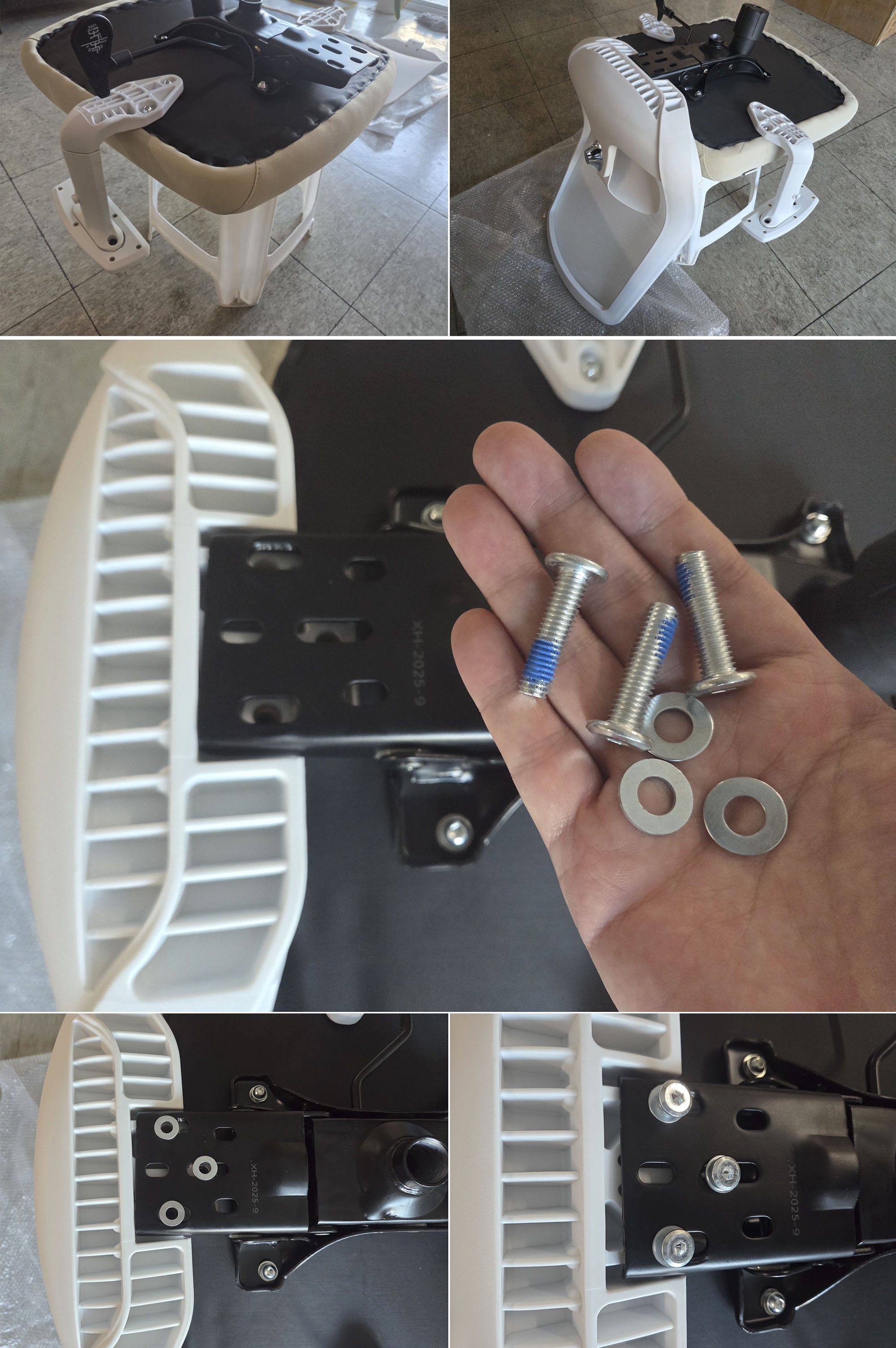 시트에 팔걸이 방향을 잘 확인 한 다음, 나사와 렌치로 고정합니다.