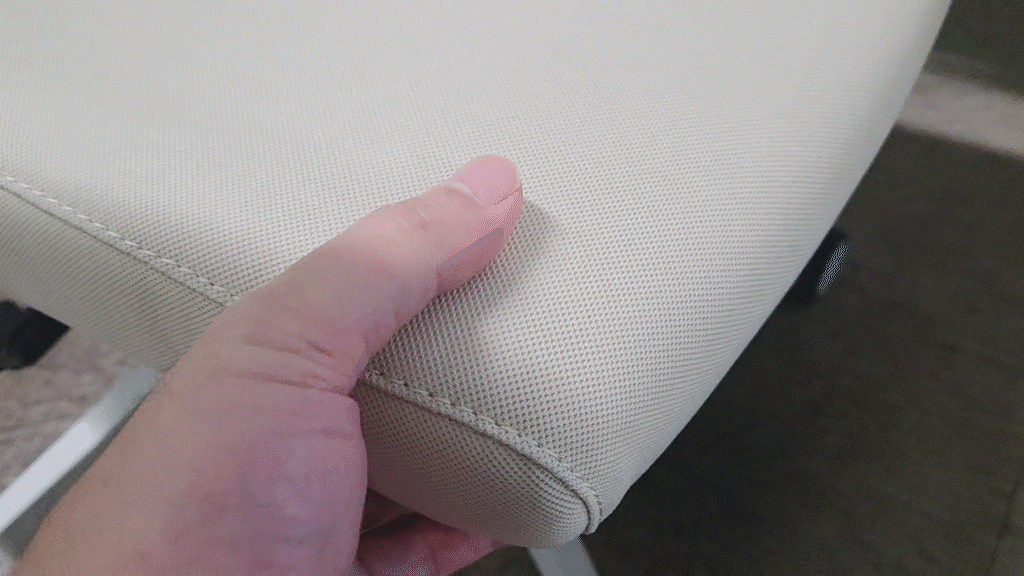 등받이는 에어 메쉬 짜임새가 촘촘하고 강력한 탄성으로 등을 기댈 경우 든든하게 받쳐주고, 자국이 남지 않습니다.