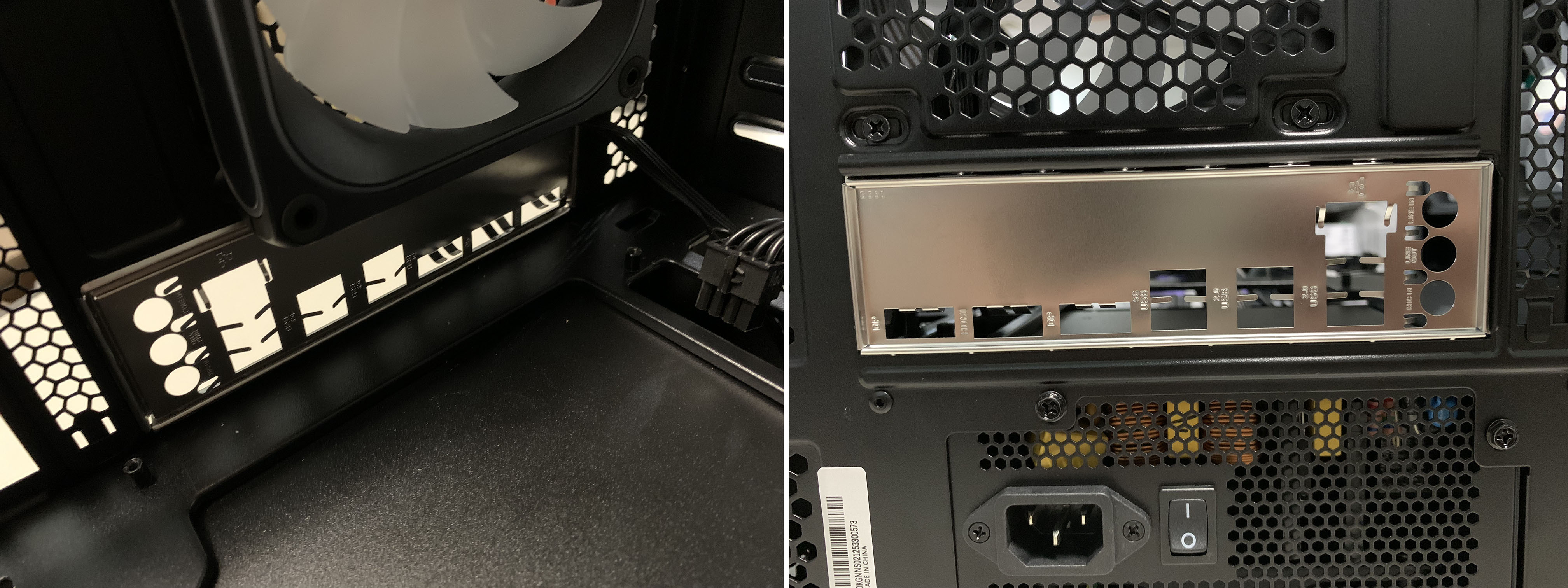메인보드를 설치하기 전에 백패널(IO쉴드)을 PC케이스에 먼저 설치합니다.