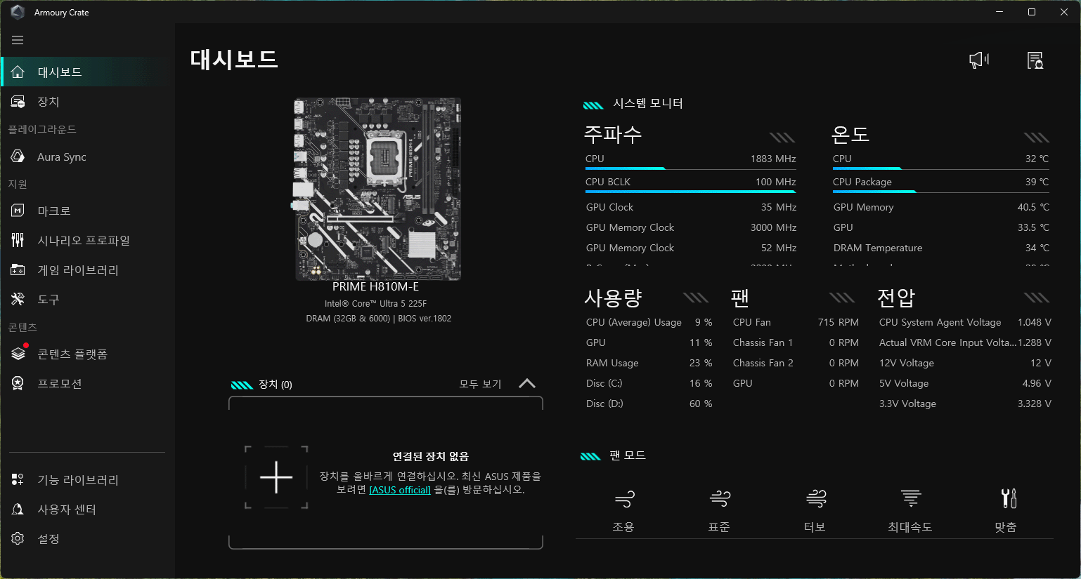 전용 소프트웨어 Armoury Crate(Aura Creator, Aura Sync, Fan Xpert 2+)를 활용하여, LED 모드, 컬러 설정, 팬속도 등이 가능하여 취향에 멋지게 시스템을 튜닝할 수 있습니다.