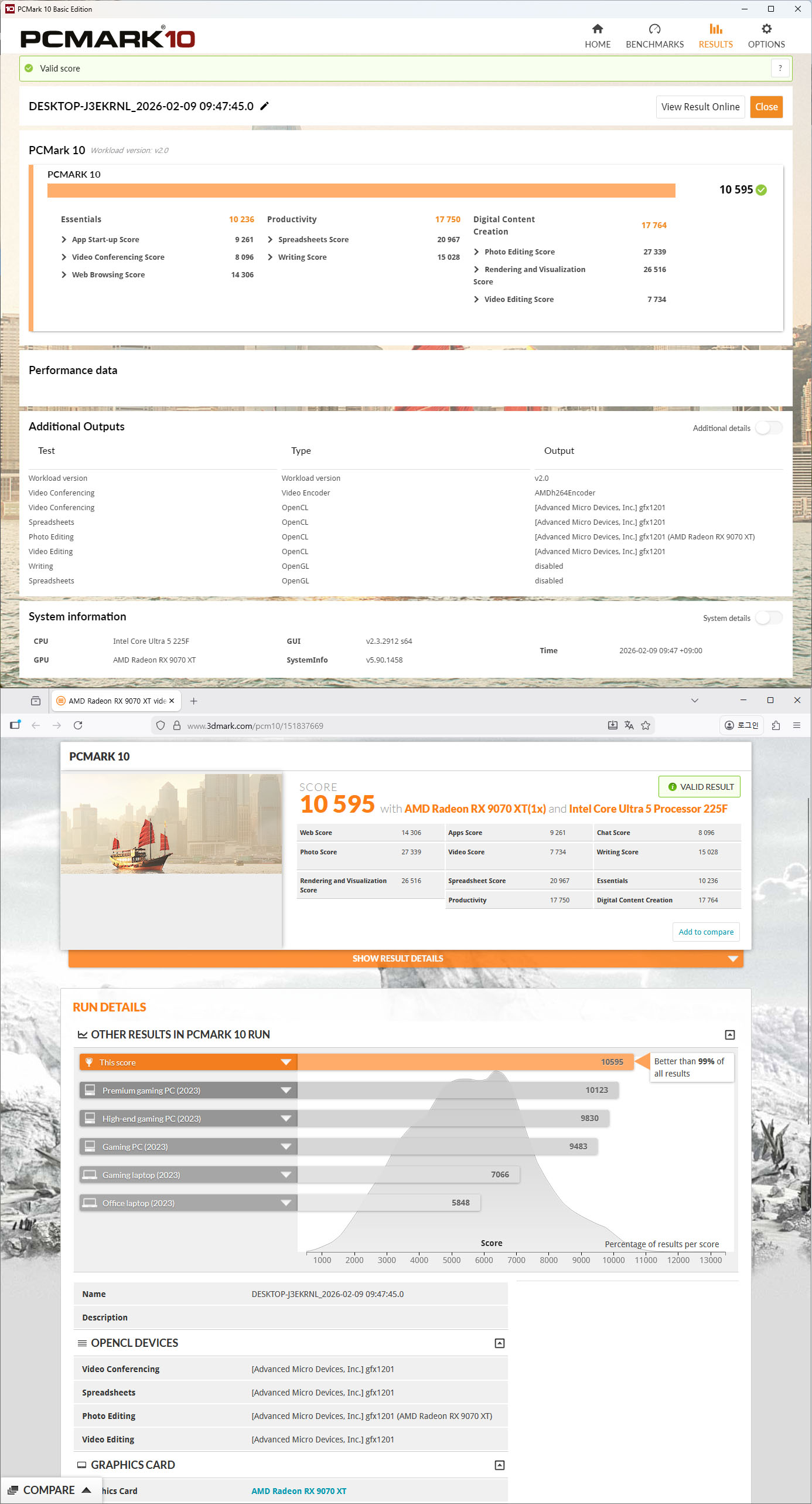 PCMARK10 프로그램에서 실행한 결과입니다.