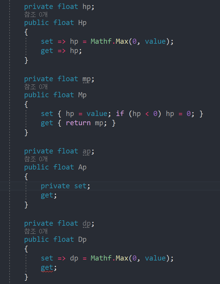 hp, mp 값을 넣을때, 0보다 크거나 같은 값을 넣는 방법입니다. 어느것을 사용하더라도 상관없습니다.