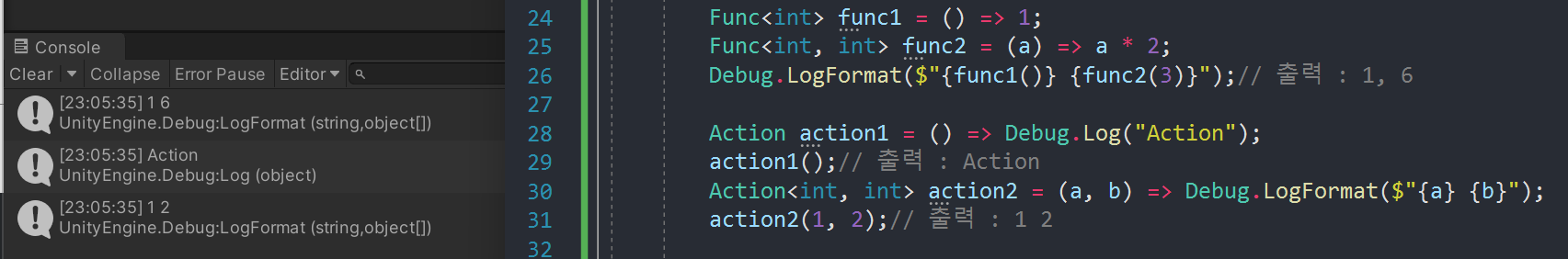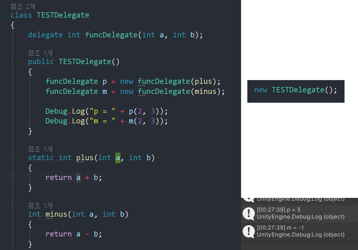 c111은 델리게이트에 함수를 등록하는게 아니라, 바로 실행문장을 등록이 가능하다.
