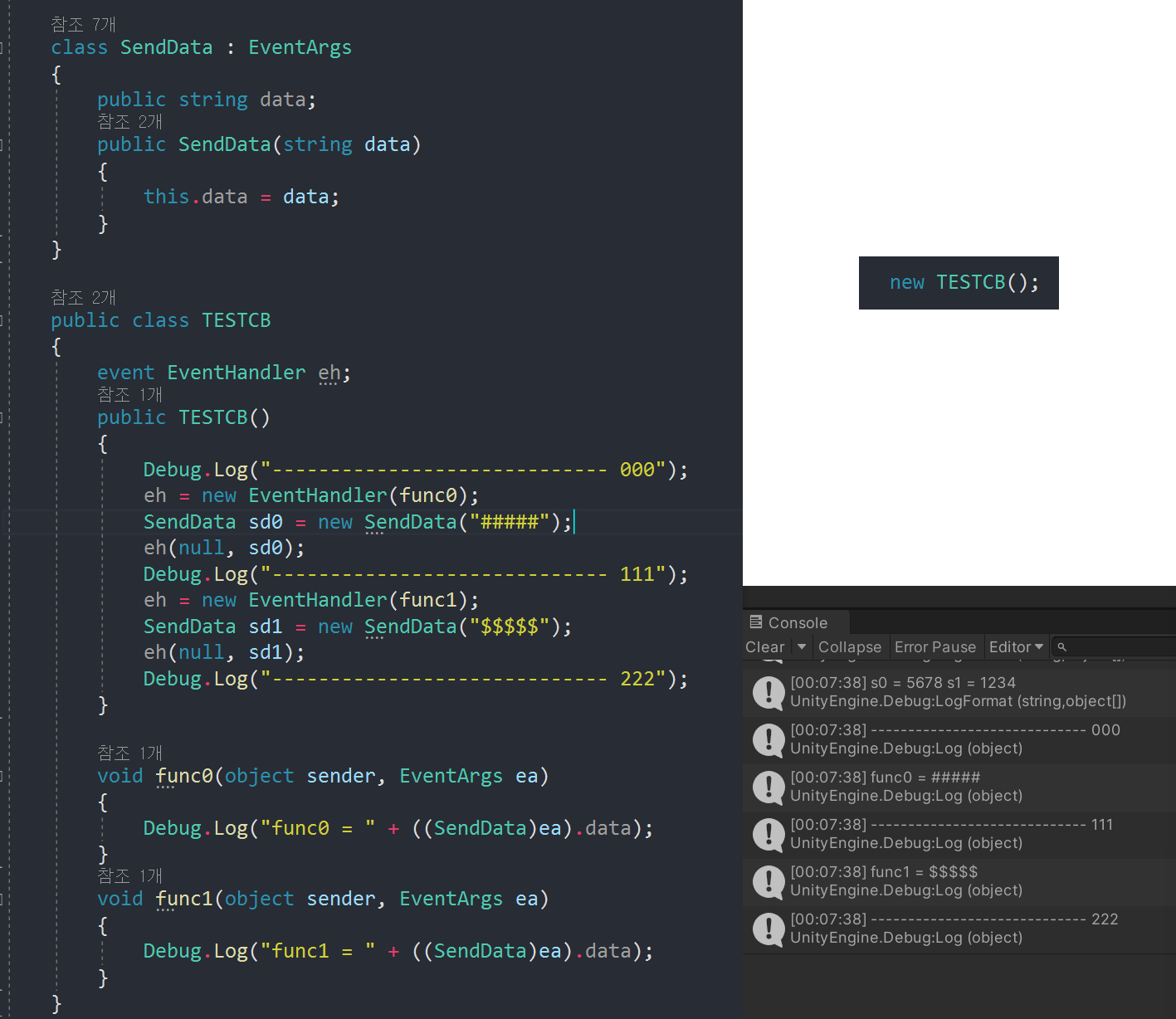 C/C++ 함수포인트와 비슷하지만, EventHander가 호출될때 인자값 2개로 정해져있음이 다르다.