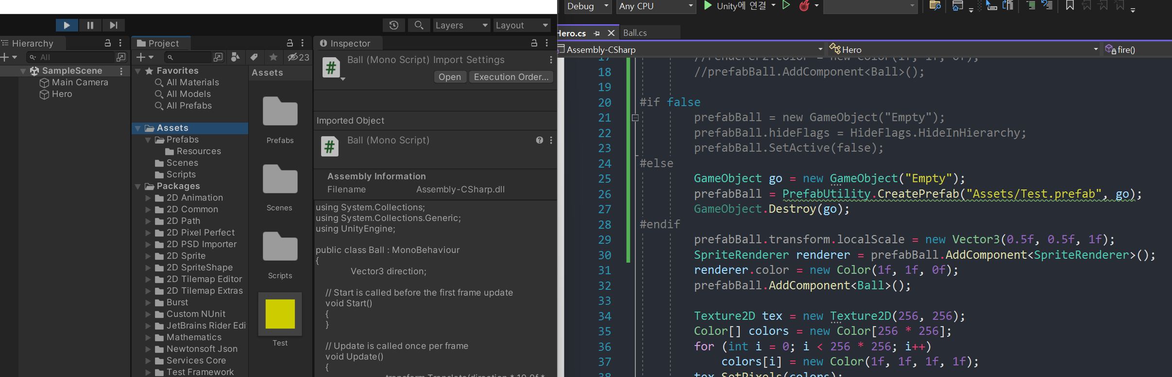 1. prefabBall.hideFlags = HideFlags.HideInHierarchy; 로 Hierachy에 안보이게 숨길 수 있다.