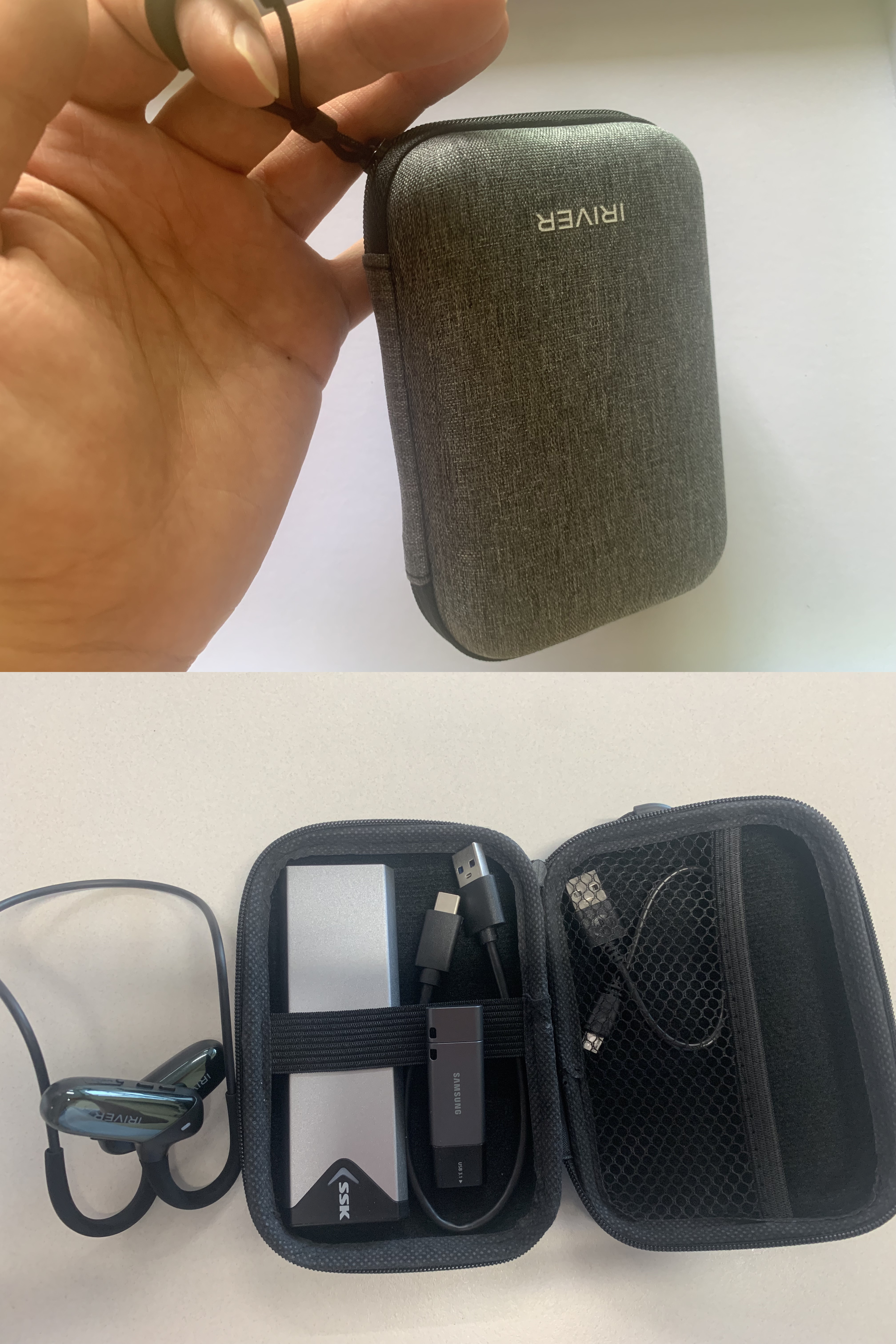 보관함인 파우치가 천 재질이라 약해 보이지만, 실제 만져보면 약간 딱딱해서 이어폰의 모양 보존을 잘 도와주고, 여유 공간이 있어서, usb 메모리나 nvme 저장장치를 같이 보관해서 휴대하더라도 좋습니다.