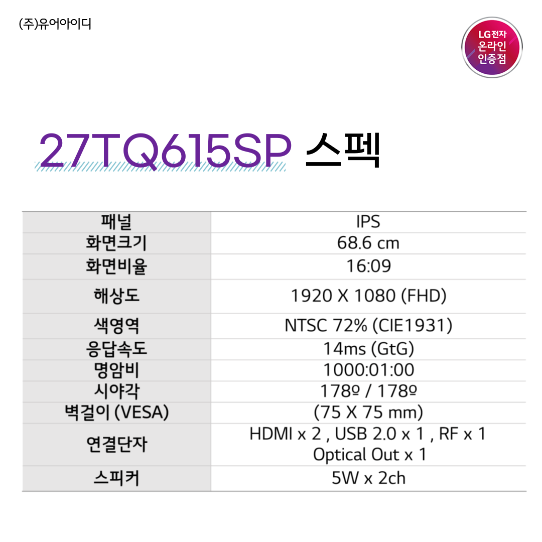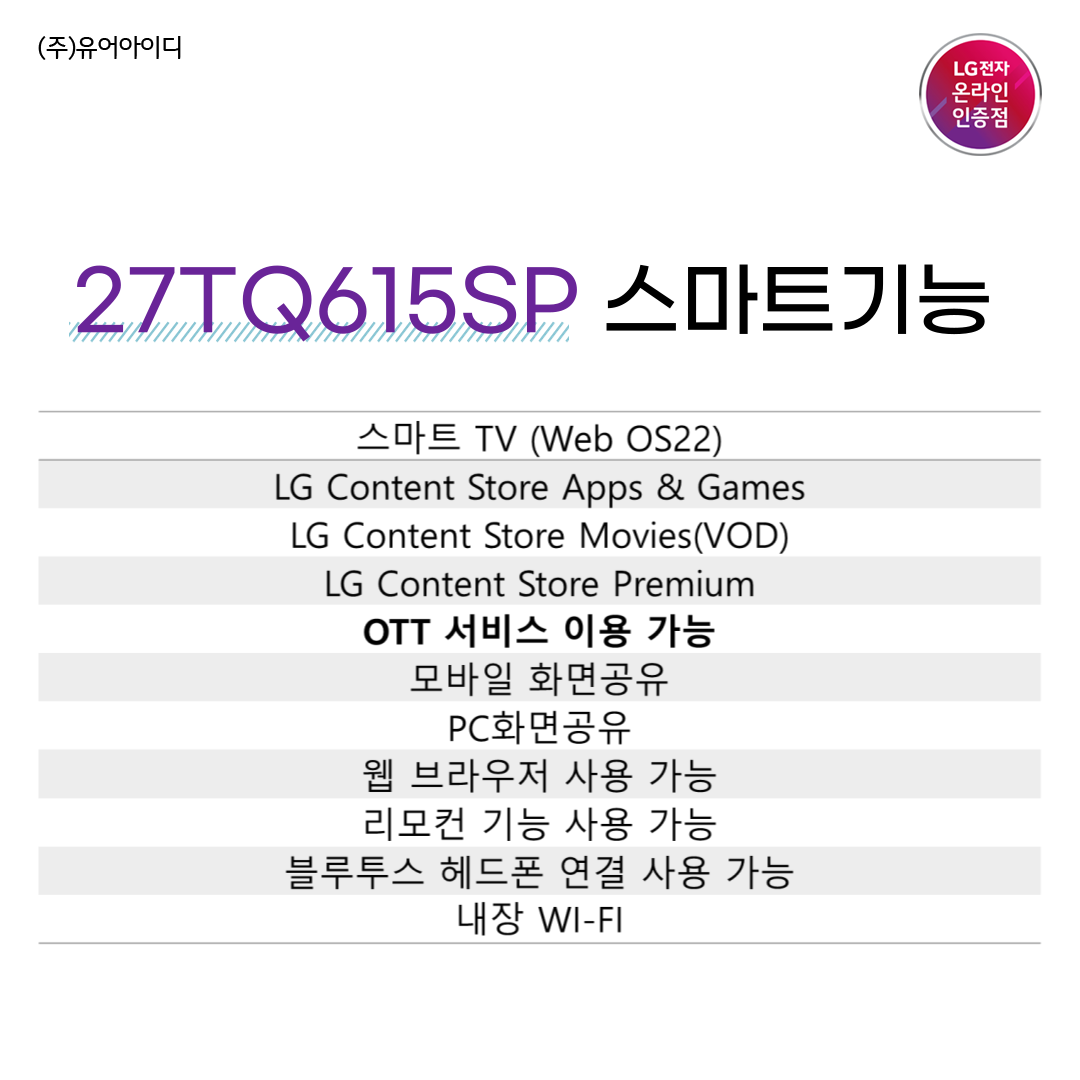 ◆ LG전자 스마트모니터(TV겸용) 27TQ615SP 스펙 ◆