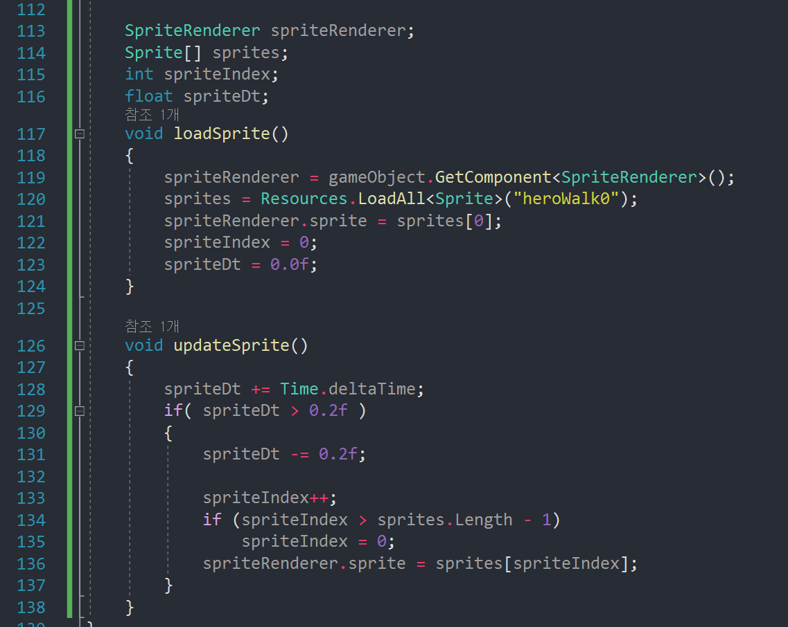 Hero에 스프라이트를 적용해보자. 초기화 및 업데이트하는 곳이다.