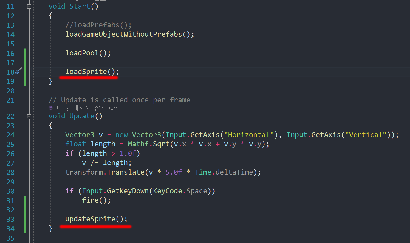 엔진단에서 이 코드가 실행되는 영역은 차후에 시간이 되면 설명하는걸로 하고 스프라이트는 마무리 한다.